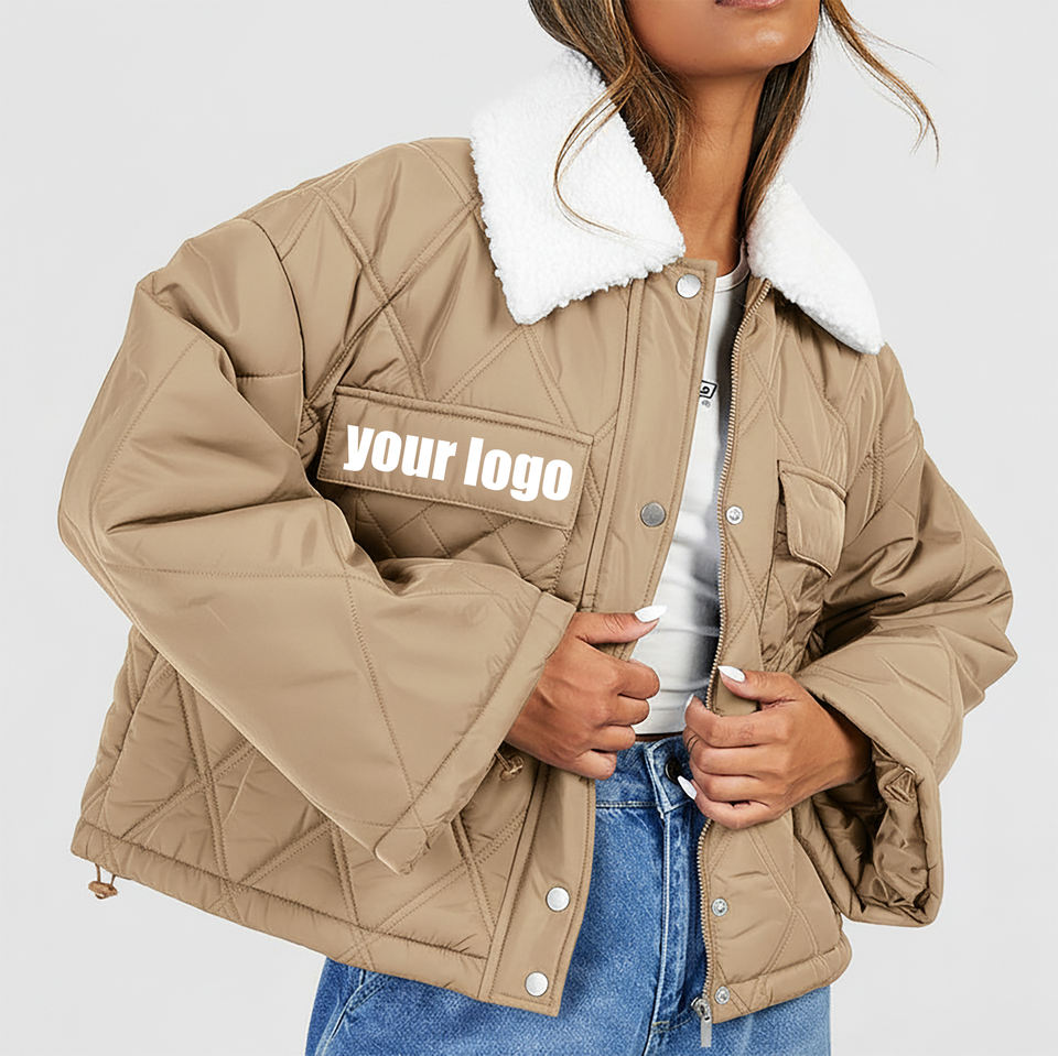 เสื้อโค้ทพัฟเฟอร์แฟชั่นขายส่ง เสื้อโค้ทบับเบิ้ลมีฮู้ดบุขนเป็ดอุ่นๆ สำหรับผู้หญิง คุณภาพพรีเมียม ตกแต่งด้วยผ้าแบบแพทช์เวิร์ค เสื้อแจ็คเก็ตบอมเบอร์พัฟเฟอร์สำหรับฤดูหนาว