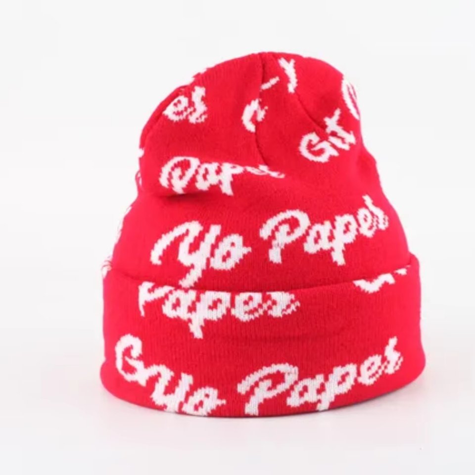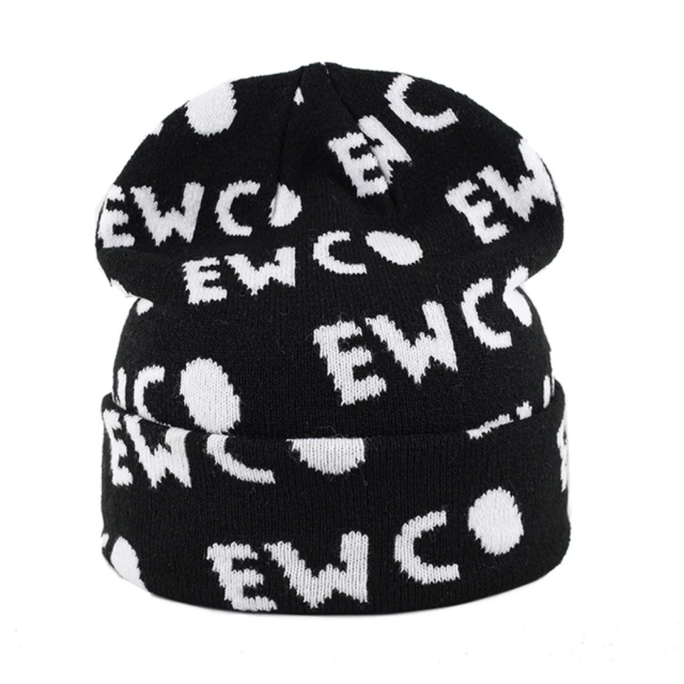 หมวกบีนนี่ทรงกะโหลกแฟชั่นหมวกอะคริลิคถักทันสมัยวัสดุผ้าแจ็คการ์ดพิมพ์โลโก้สำหรับฤดูหนาว