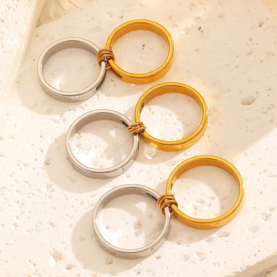 แหวนแต่งงานสแตนเลสชุบทองแฟชั่นขายส่ง ดีไซน์คลาสสิก สำหรับทุกเพศ สามารถสวมซ้อนกันได้ แหวนหลายชั้นแบบเชื่อมต่อกัน