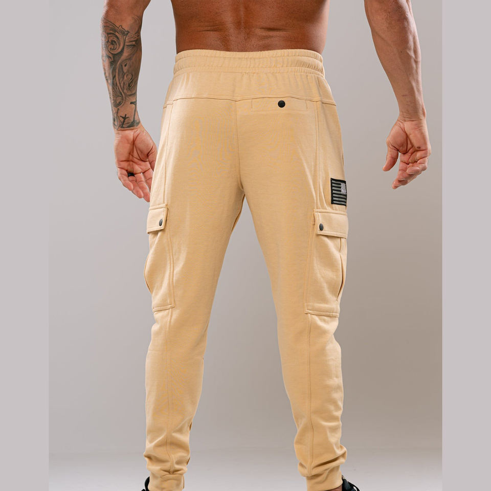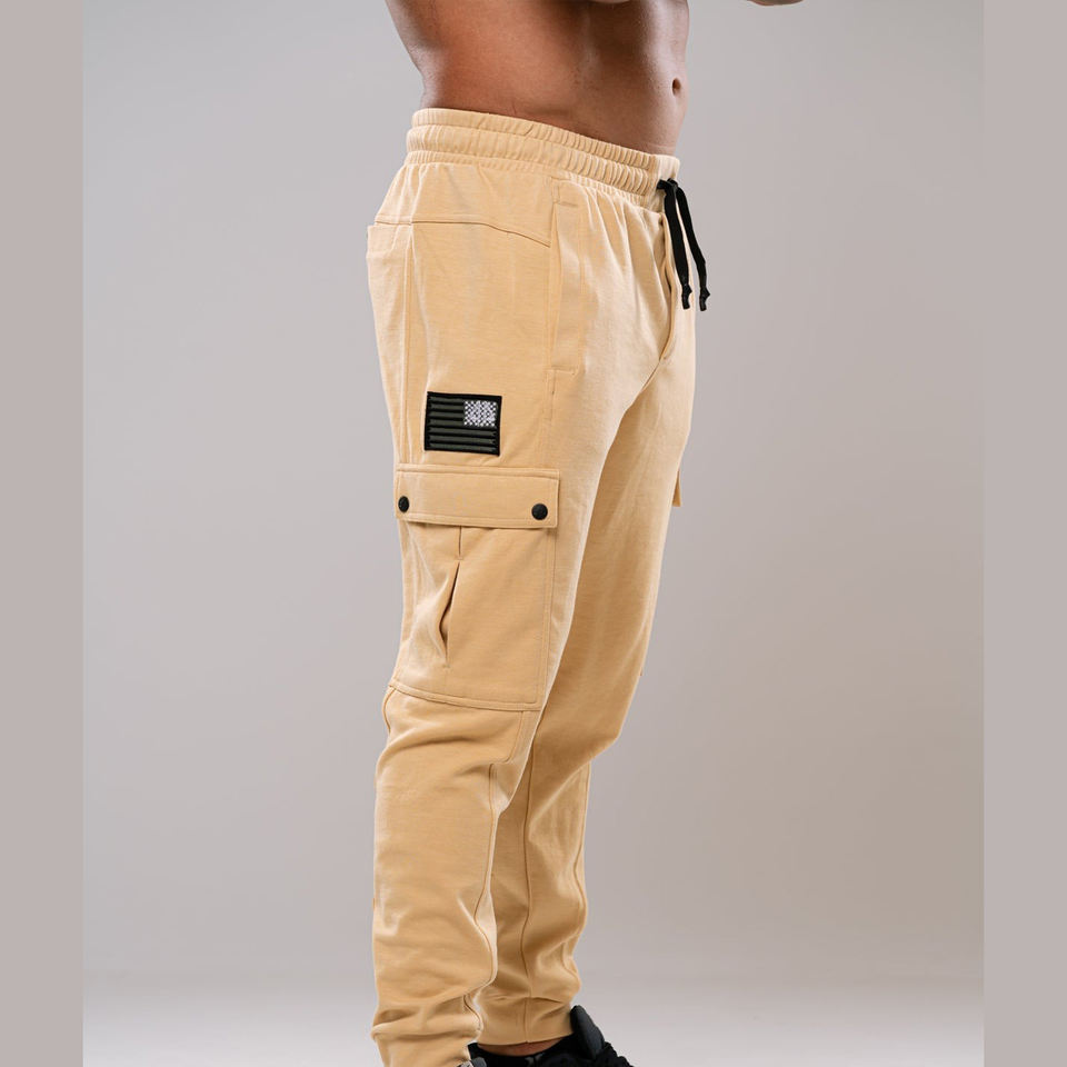 กางเกงคาร์โก้ผู้ชายทรงตรงเข้ารูปแบบลำลองเอวยางยืดมีกระเป๋าขนาดใหญ่