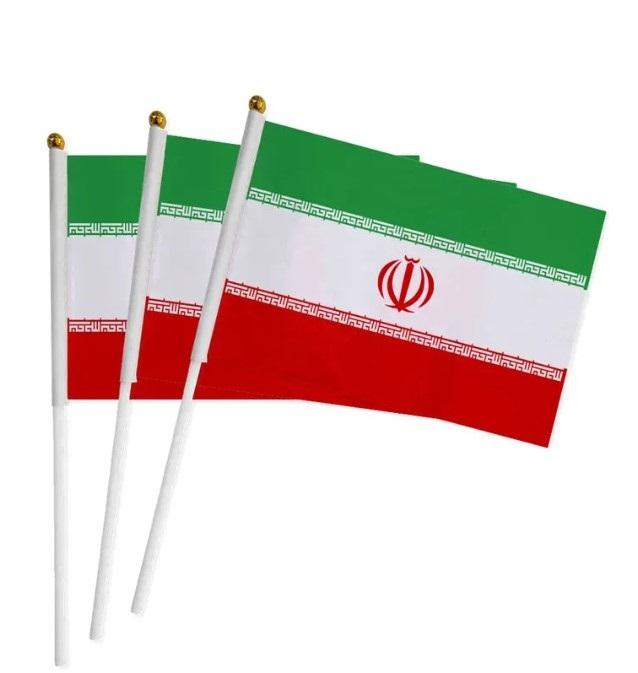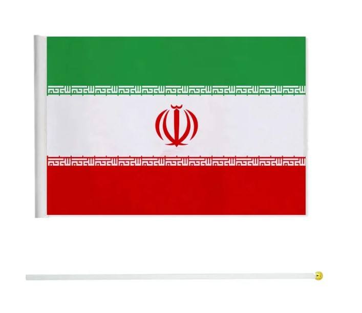 ขายส่ง ธงชาติอิหร่าน ขนาด 14x21 ซม. ผลิตจากโพลีเอสเตอร์ 100% พร้อมเสา ธงโบกมืออิหร่าน จัดส่งรวดเร็ว