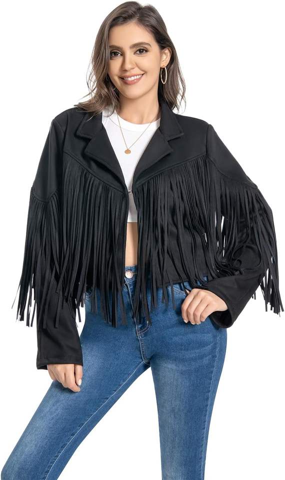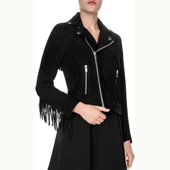 เสื้อแจ็กเก็ตหนังกลับแท้ของผู้หญิงเสื้อโค้ทแฟชั่นแต่งพู่รถจักรยานยนต์