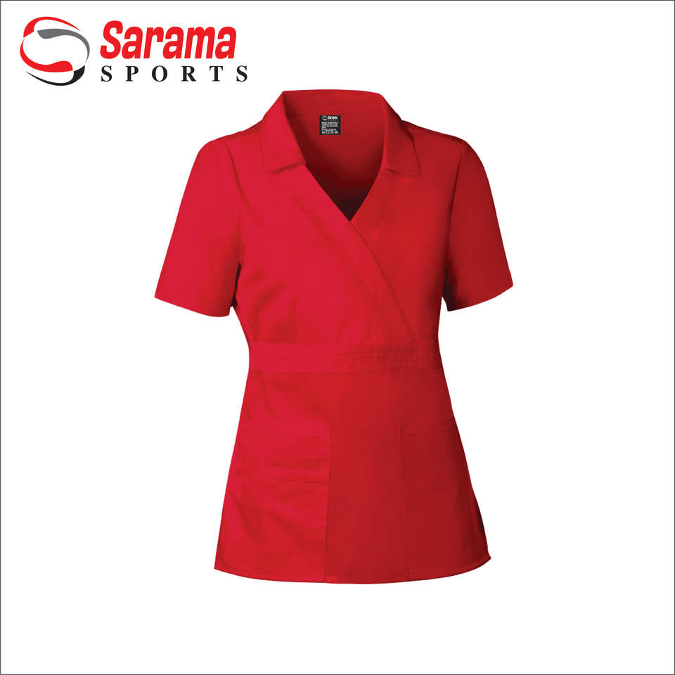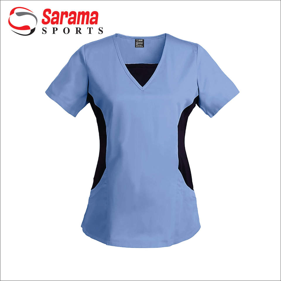 Wholesale Female Good Fashionable Scrub Uniform Set with CVC Printed Fabric Tops and White Color Pants