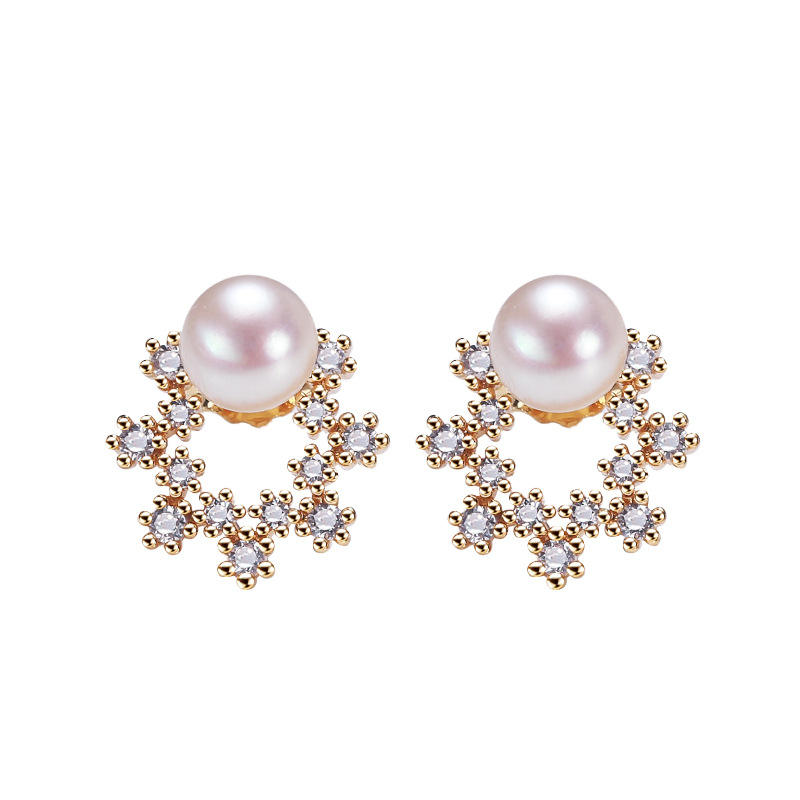 ต่างหูแฟชั่นผู้หญิงขายส่ง ดีไซน์น่ารัก รูปตัว C ประดับมุกน้ำจืด