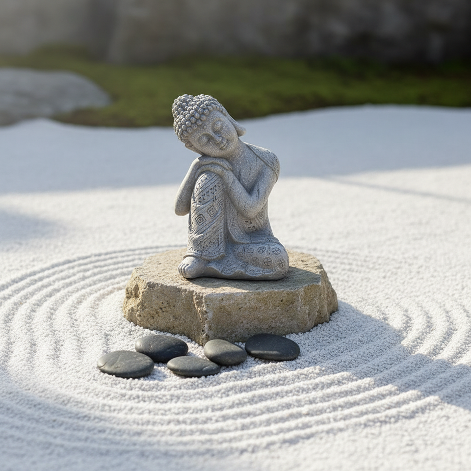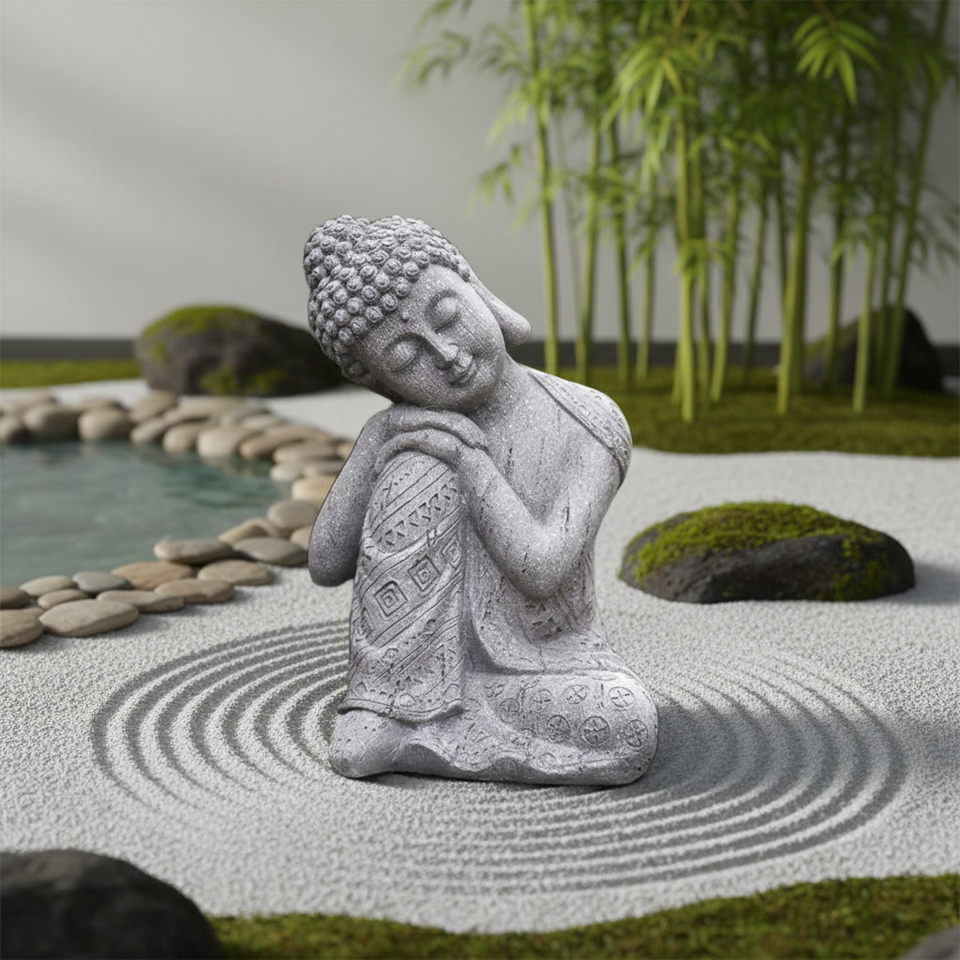 รูปปั้นพระพุทธรูปหลับประหลาด วัสดุเรซิ่น สำหรับขายส่ง ของตกแต่งสวน ศิลปะเซน ฝึกสมาธิ