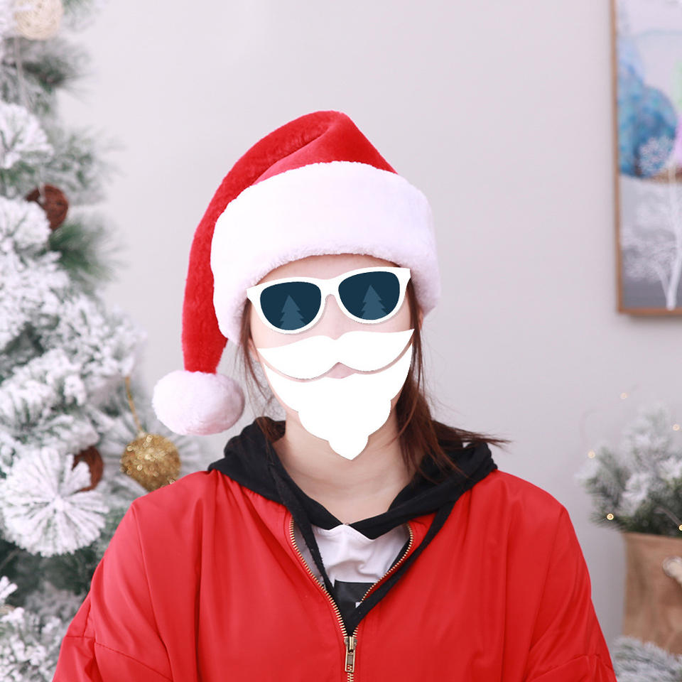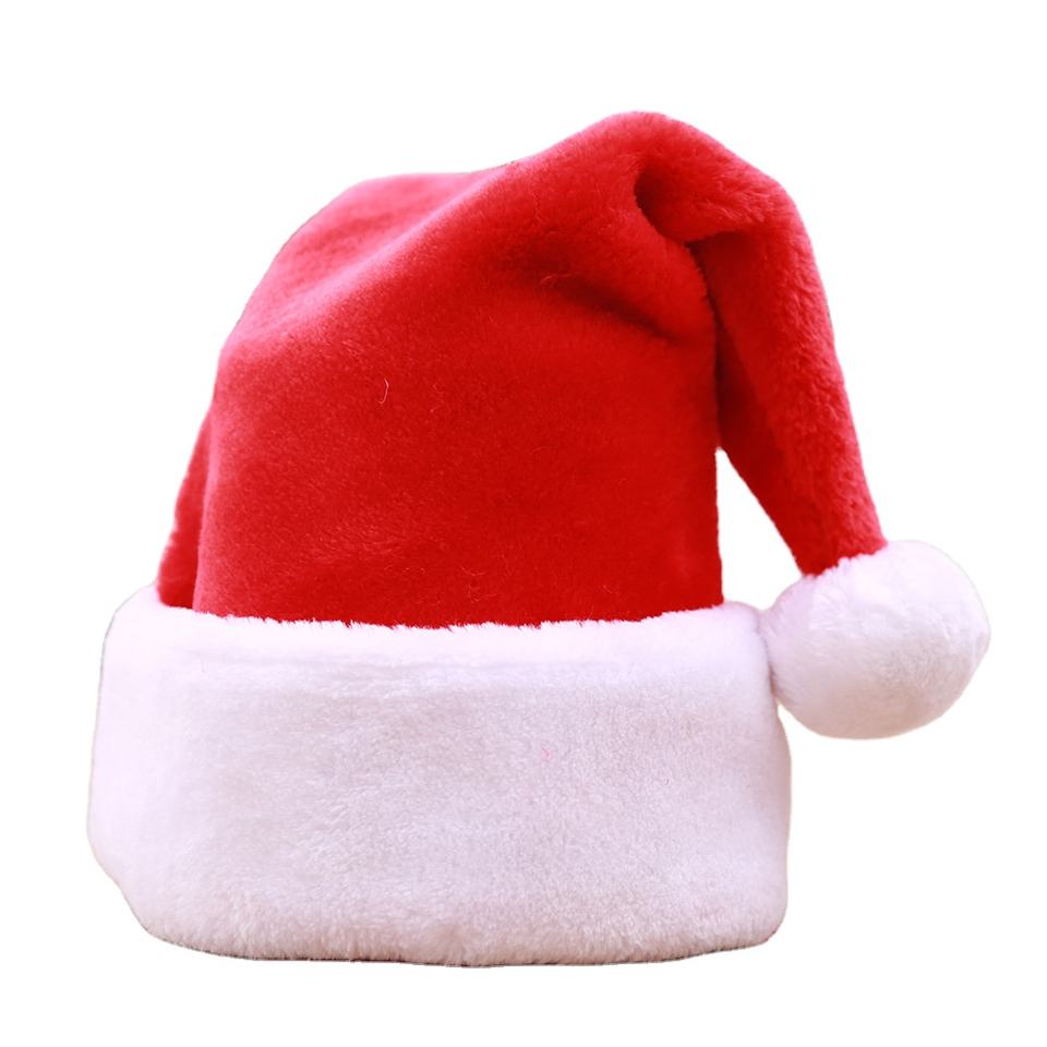 หมวกซานตาคลอสตกแต่งด้วยผ้าขนสัตว์สีแดงแบบทางการสำหรับเทศกาลขายส่ง