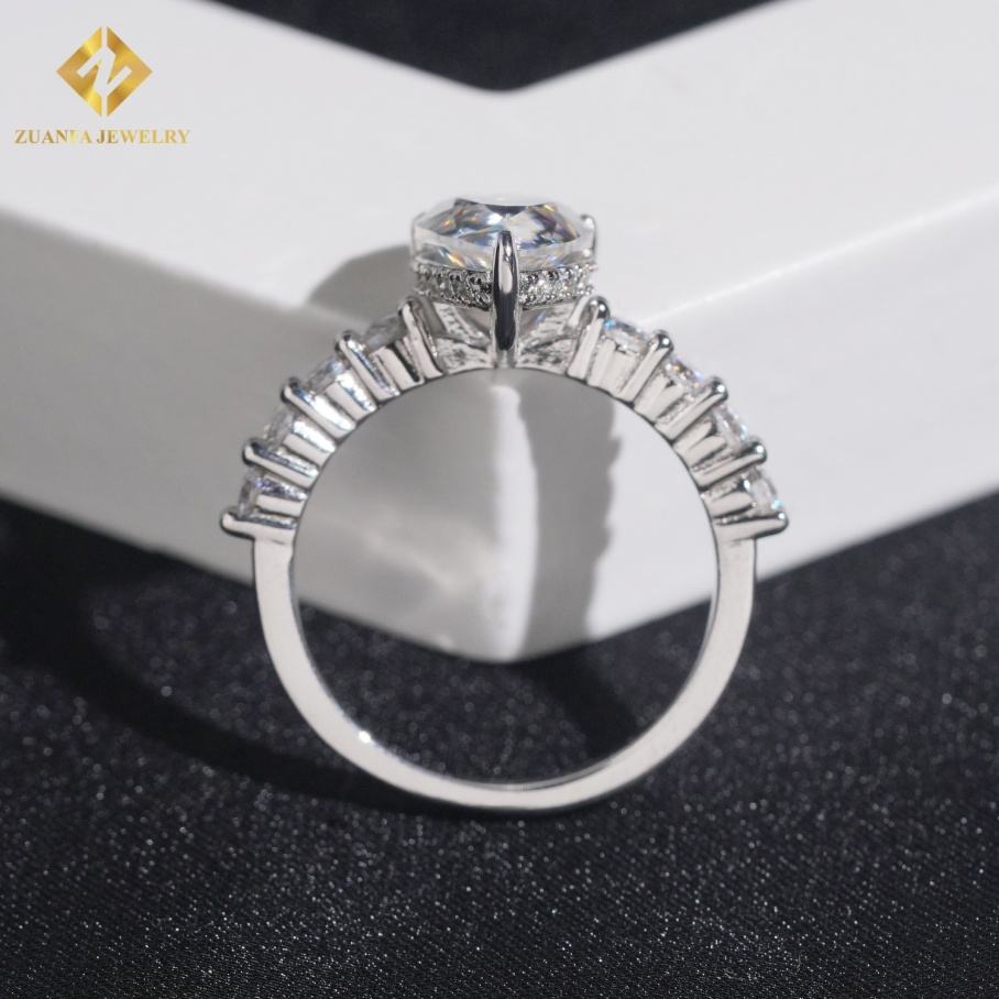 แหวนหมั้นจิวเวลรี่อย่างดีสำหรับผู้หญิงแหวนเพชรโมอิส925เงินแท้ชุบโรเดียมสำหรับผู้หญิง