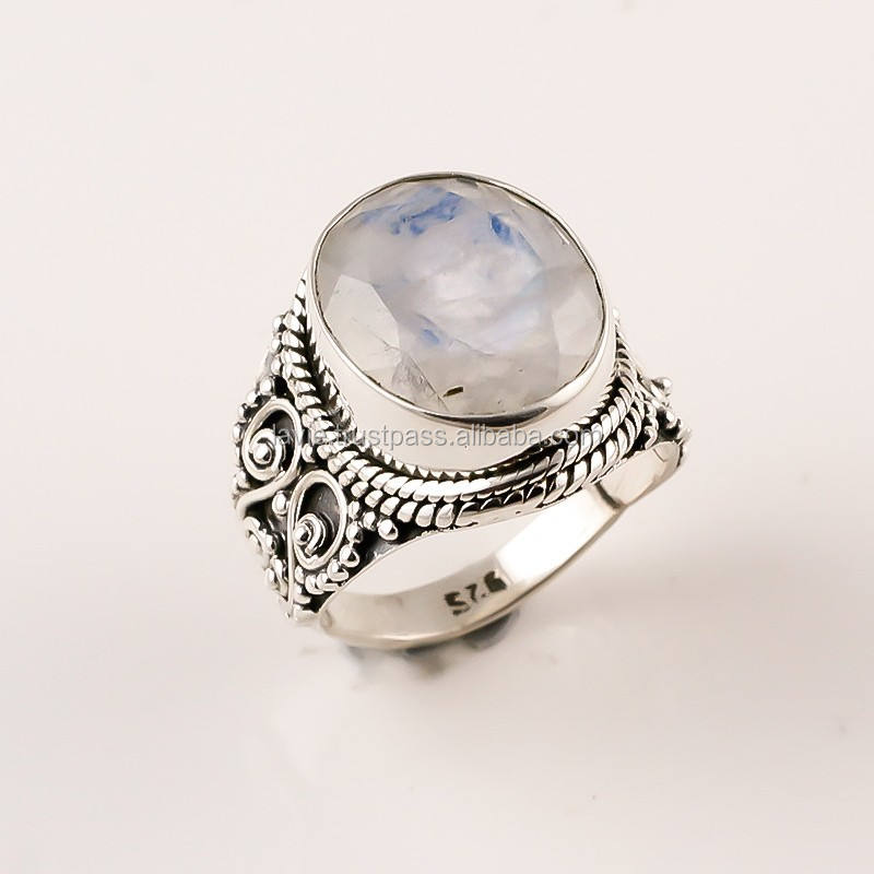 Wholesale Fine Jewelry Natural Faceted Rainbow Moonstone 925 Sterling Silver Rings Weddings Engagements Expert Setting