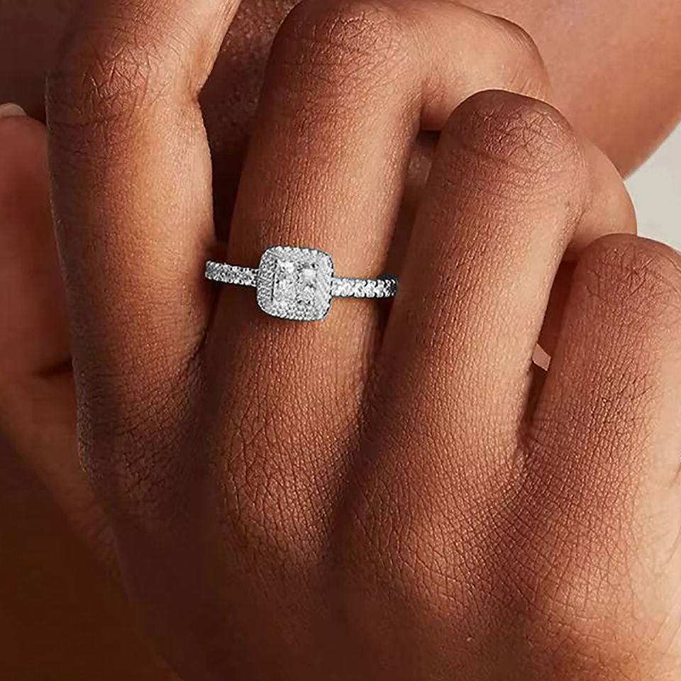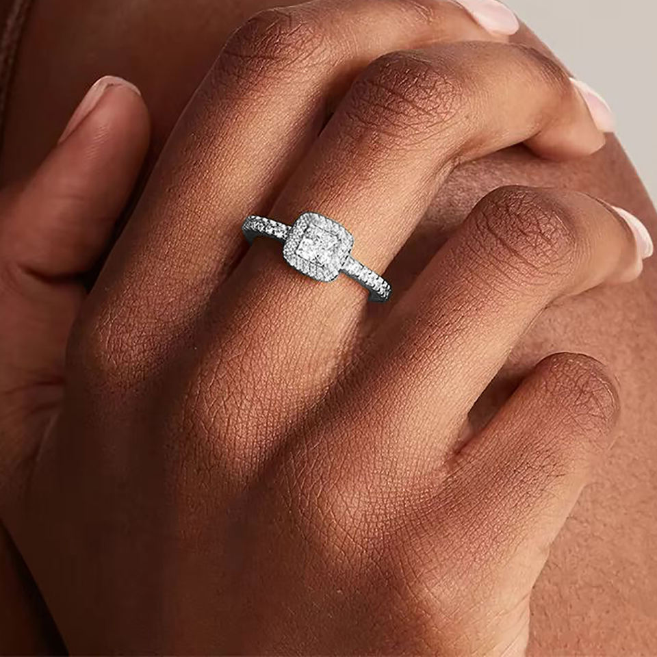 Design: แหวนเพชรทรงเจ้าหญิง ประดับรอบวงแบบ Halo
