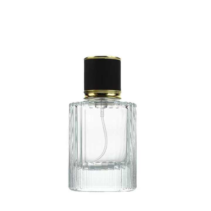 ขวดน้ำหอมแบบพ่นฝอยละเอียดสำหรับขายส่ง ขนาด 30 มล./50 มล. ลายเส้นแนวตั้ง ฝาเกลียว รูปทรงกระบอก