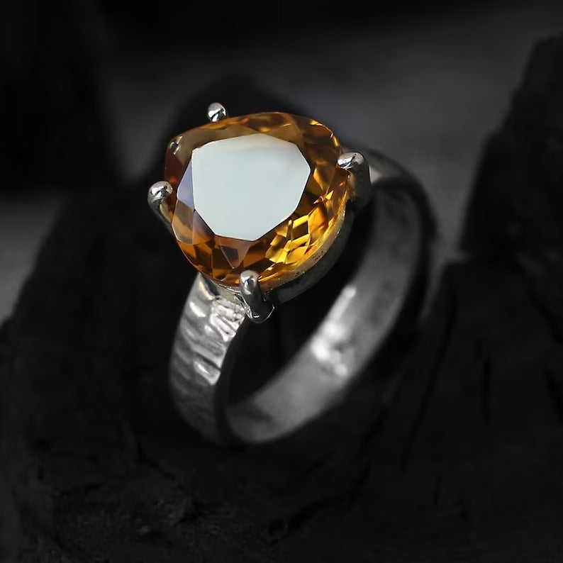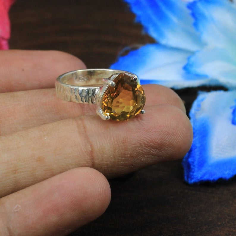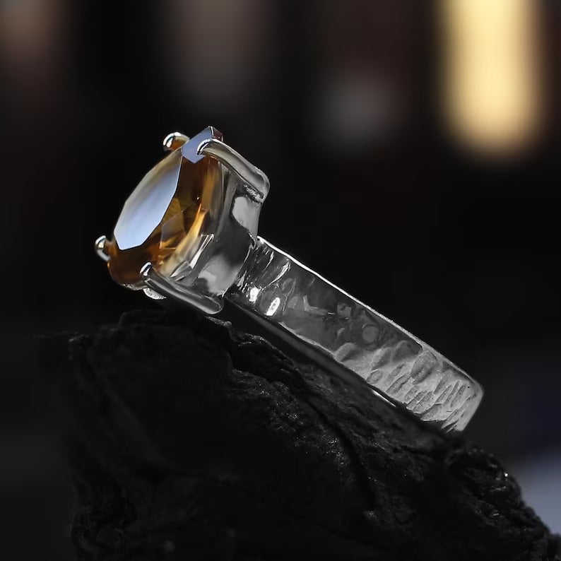 แหวนพลอยซิทรีนขนาด11x11มม. ทำจากเงินสเตอร์ลิงชุบทองตัวเรือนการตั้งค่าตัวเลขสำหรับงานแต่งงานขนาด4.48กรัม