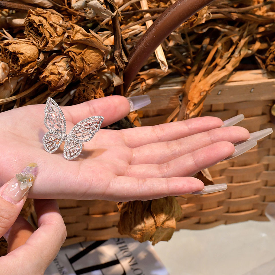 เครื่องประดับผู้หญิงชุบโรเดียมแบบกว้างพิเศษรูปผีเสื้อสำหรับทำแลปเงินแท้