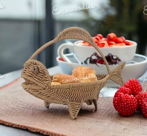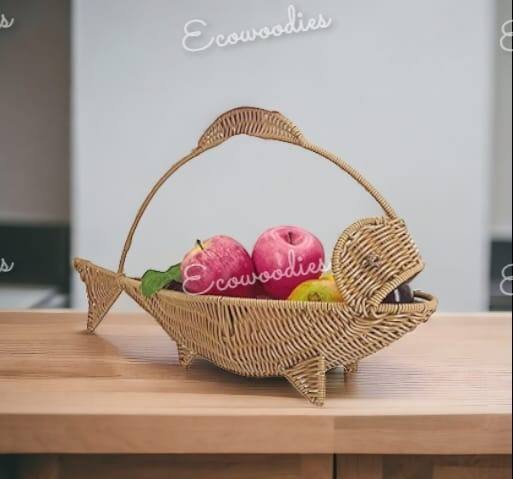 ตะกร้าหวายทรงปลาสำหรับใส่ของตกแต่งบ้านตะกร้าสานสำหรับใส่ผลไม้หรือขนมขบเคี้ยว