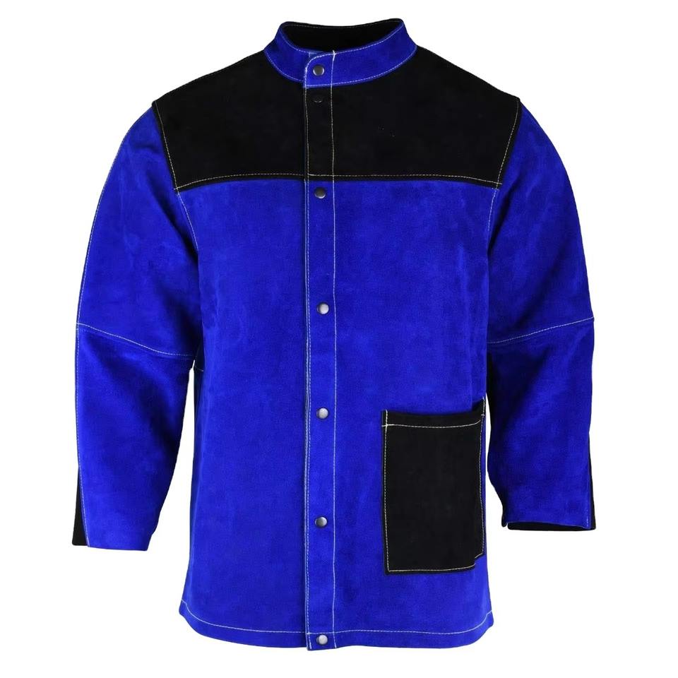 เสื้อแจ็คเก็ตหนังทนไฟสำหรับงานเชื่อมป้องกันอันตรายสำหรับช่างเชื่อมขายส่ง