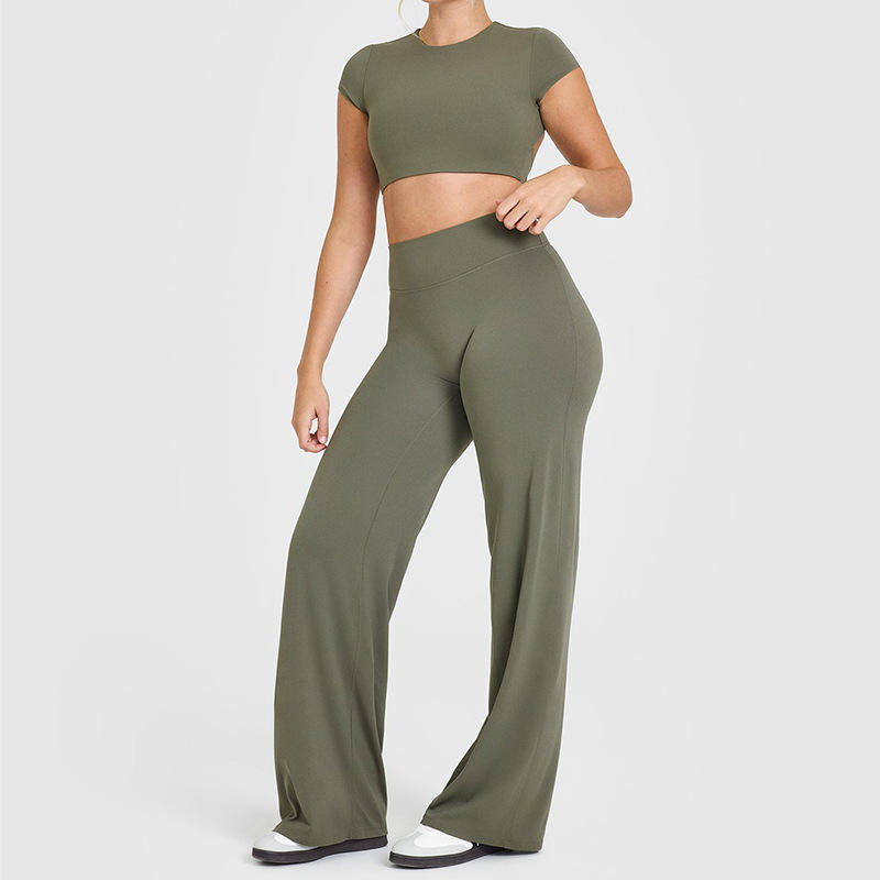 กางเกงโยคะทรงกระดิ่งเอวสูงสำหรับผู้หญิงกางเกงออกกำลังกายไร้รอยต่อ