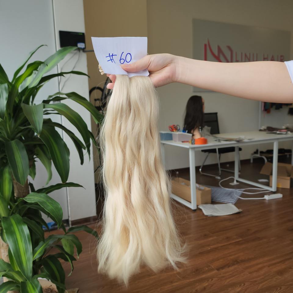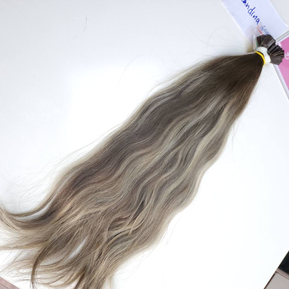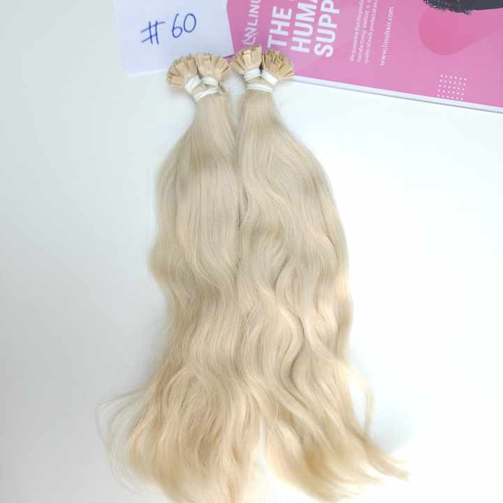 วิกผมคนผม100% บริสุทธิ์แบบเรียบมีผมต่อทำจากผมมนุษย์ผมต่อปลายแบนมีหนังกำพร้า