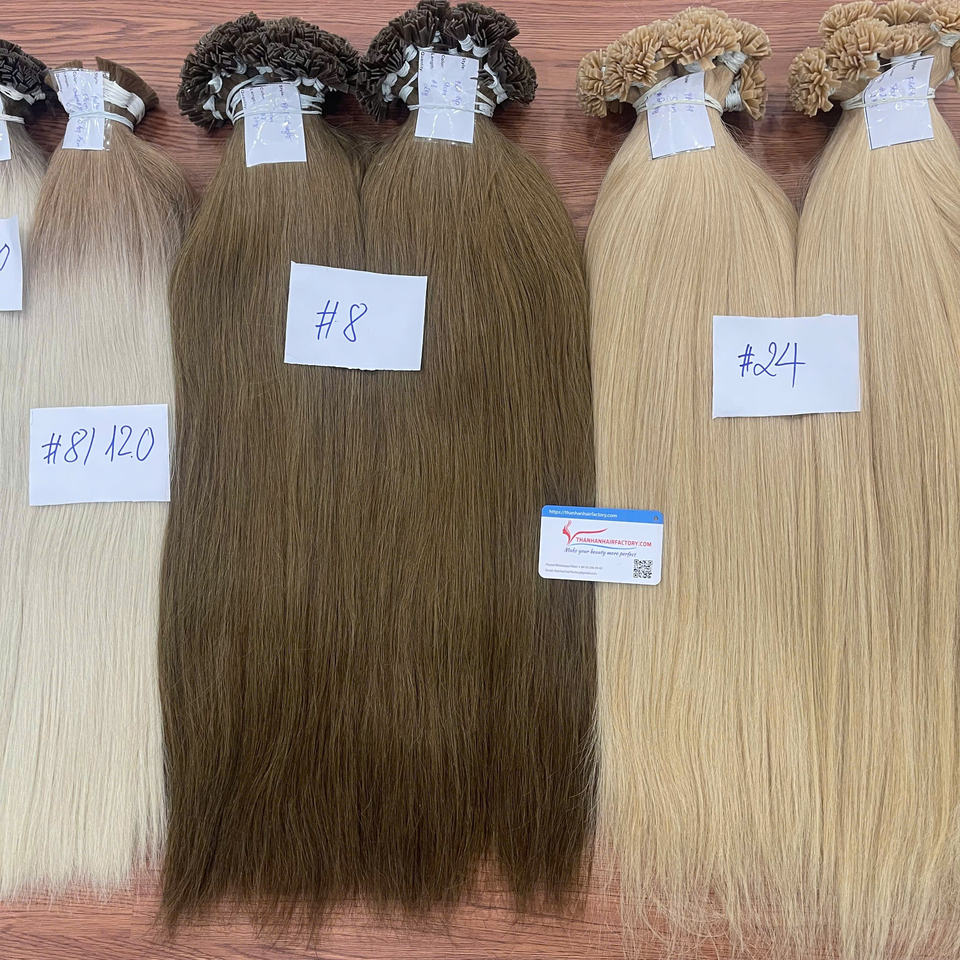 ผมต่อแบบปลายแบน เคราติน หลายขนาดและหลายสี ผมแท้เวียดนาม 100% ขายส่ง