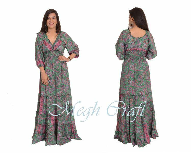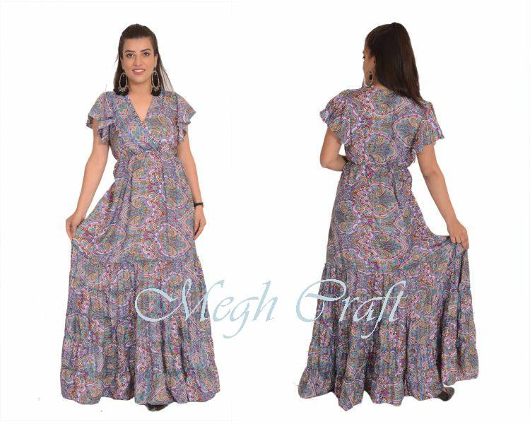 Wholesale Floral Print Beach Wear Resort Wear Maxi Dress- Bohemian Gypsy Hawaiian Maxi Dress - Mykonos Dress