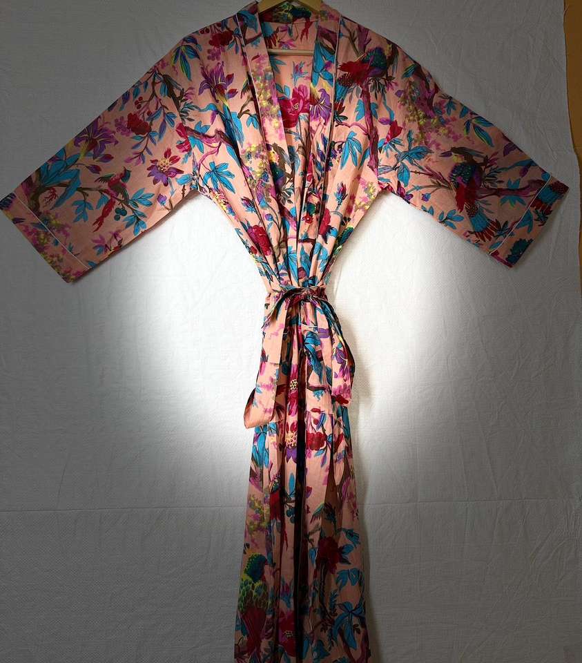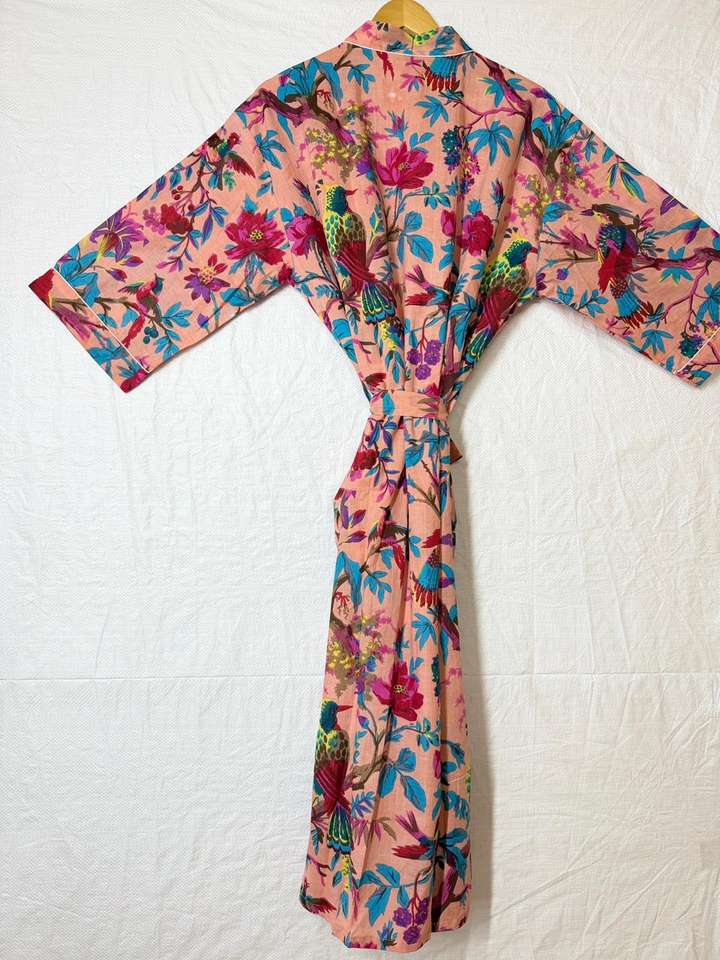 ชุดคลุมกิโมโนผ้าฝ้ายพิมพ์ลายดอกไม้ คอวี มีเชือกผูก สำหรับผู้หญิง น้ำหนักเบา ระบายอากาศได้ดี เหมาะสำหรับใส่คลุมชุดว่ายน้ำในช่วงฤดูร้อน
