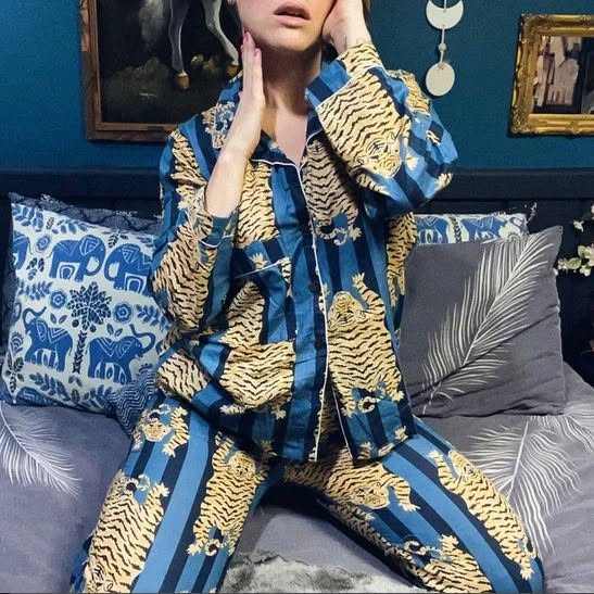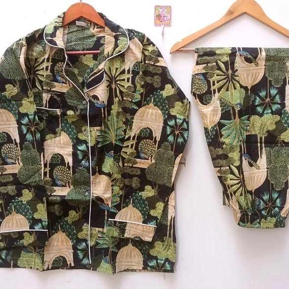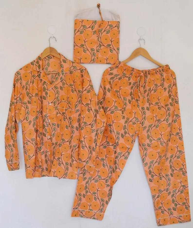 ชุดนอนผ้าฝ้ายพิมพ์ลายดอกไม้ แขนยาว สองชิ้น สไตล์ลำลอง มีกระเป๋า สำหรับผู้หญิง ขายส่ง