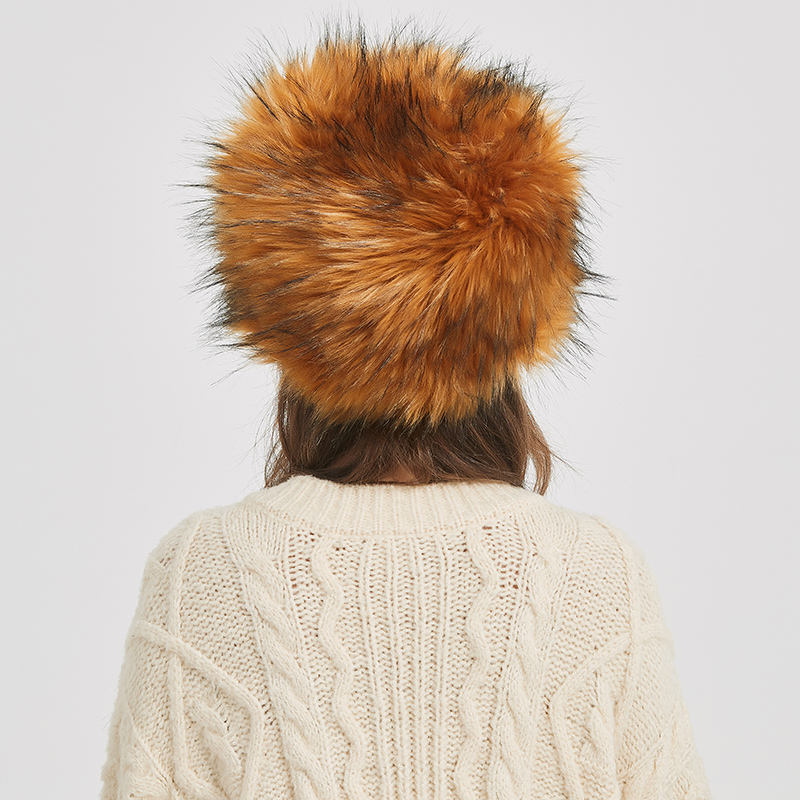 หมวกขนเฟอร์เทียมนุ่มฟูสำหรับผู้หญิง อุ่นสบาย เหมาะสำหรับฤดูหนาว ท่องเที่ยว สีพื้น ผลิตจากโพลีเอสเตอร์ 100%