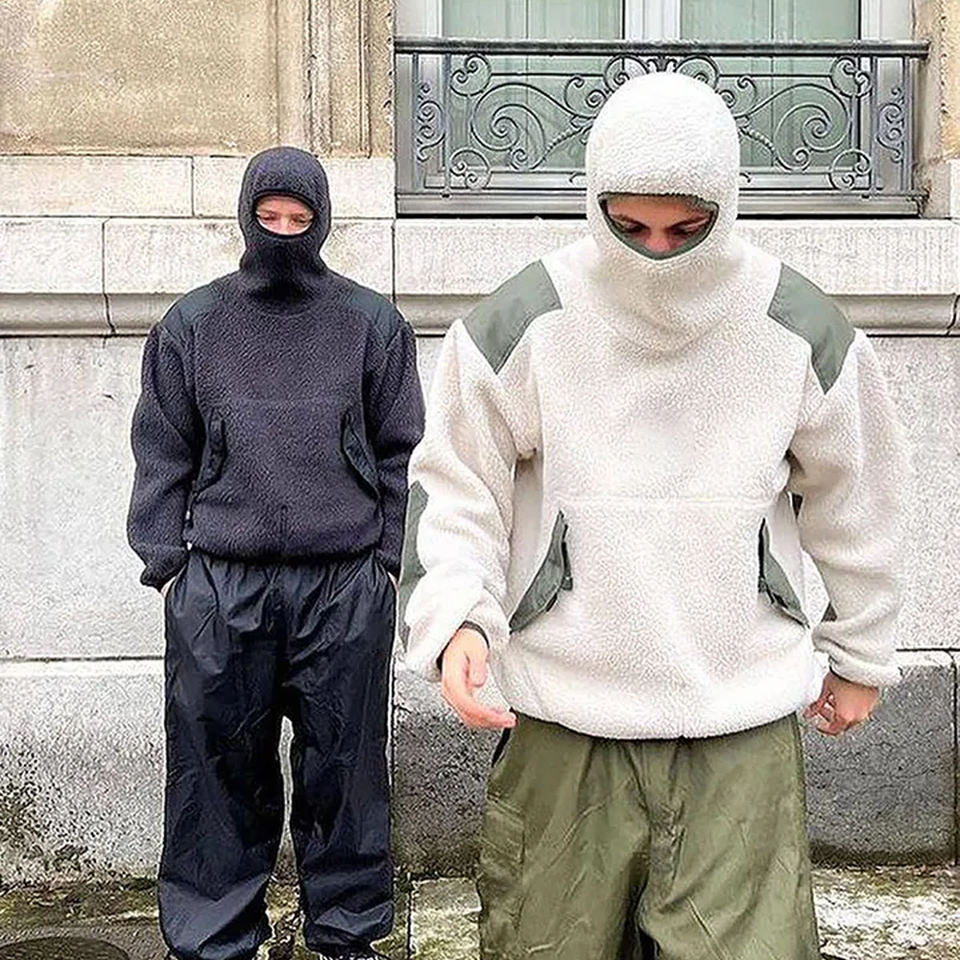 ผ้ามีฮู้ดผ้าฟลีซขนปุยสีล้วนมีฮู้ดออกแบบได้ตามต้องการมีกระเป๋าแบบหนาอบอุ่นสำหรับฤดูหนาว