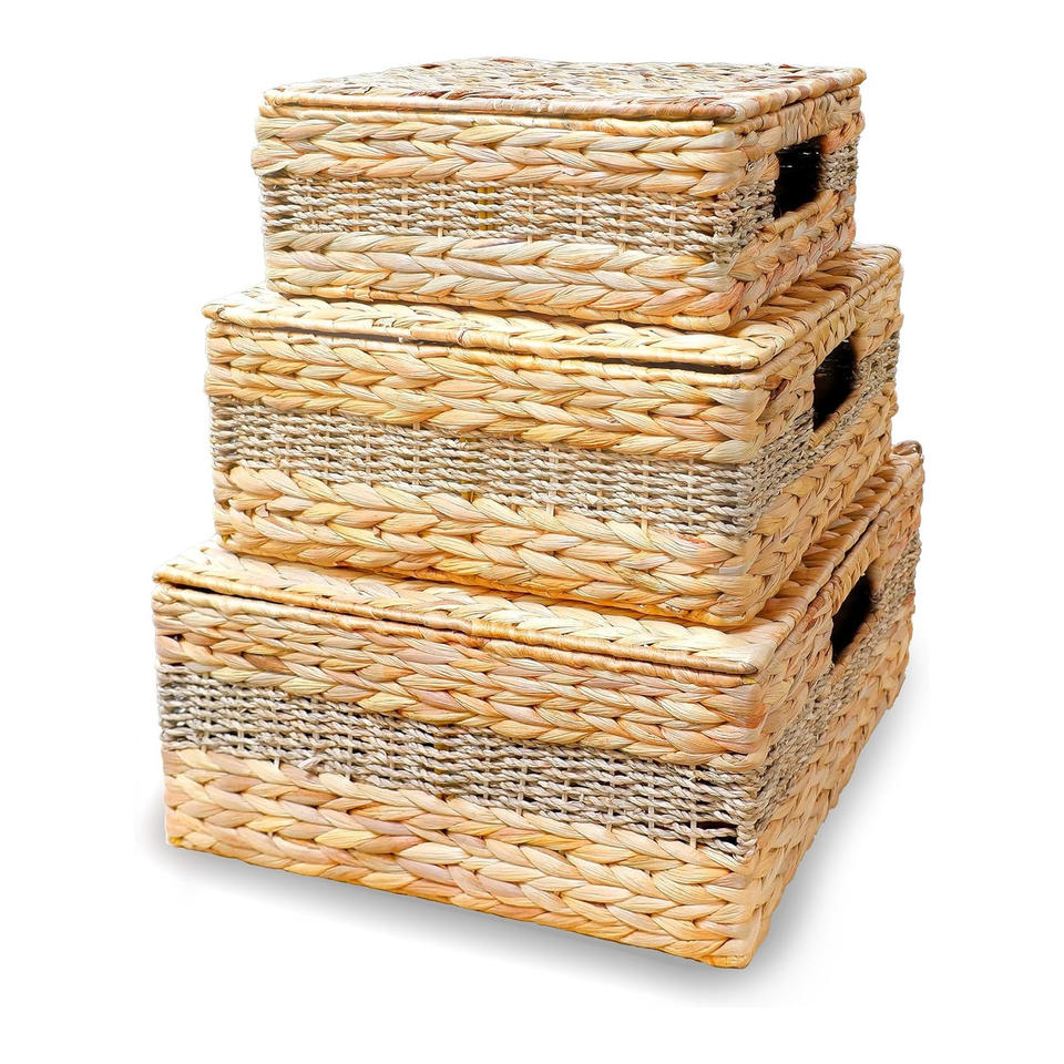 กล่องของขวัญผักตบชวาถักด้วยมือพับได้ภาชนะที่พับได้เป็นมิตรกับสิ่งแวดล้อมธรรมชาติทำด้วยมือในเวียดนาม