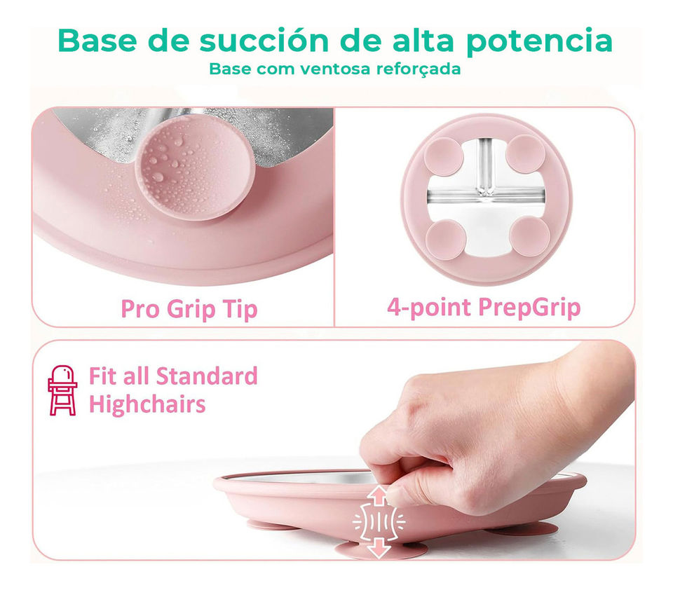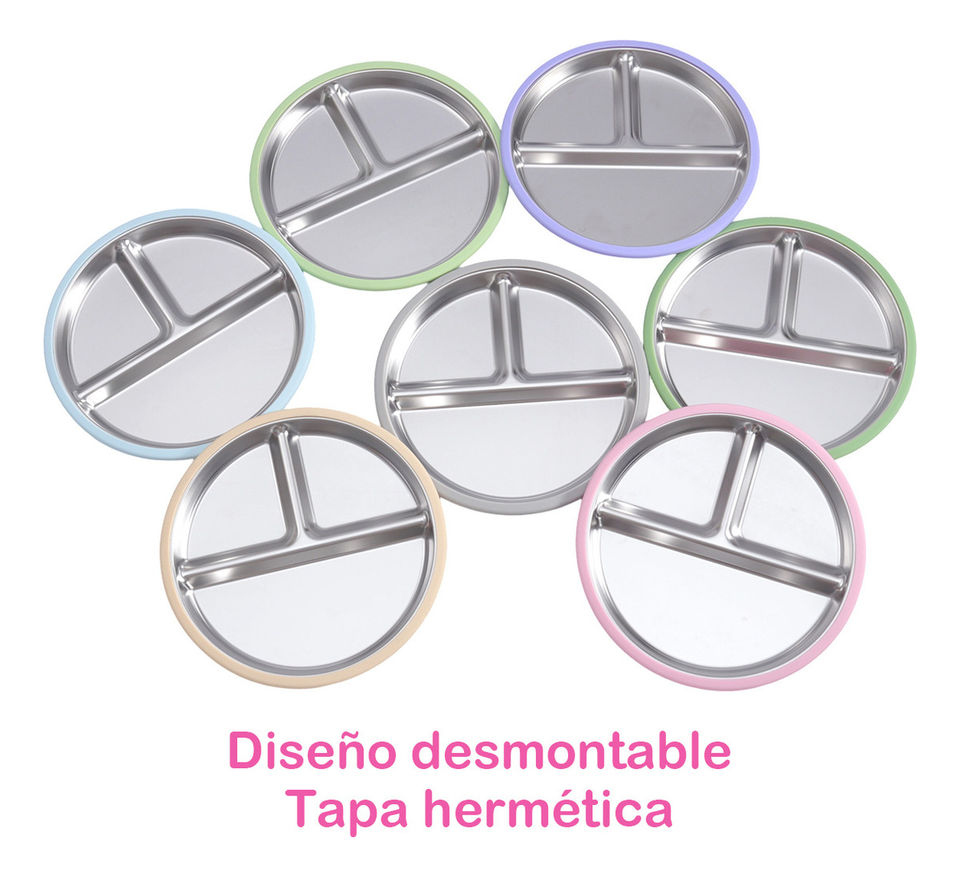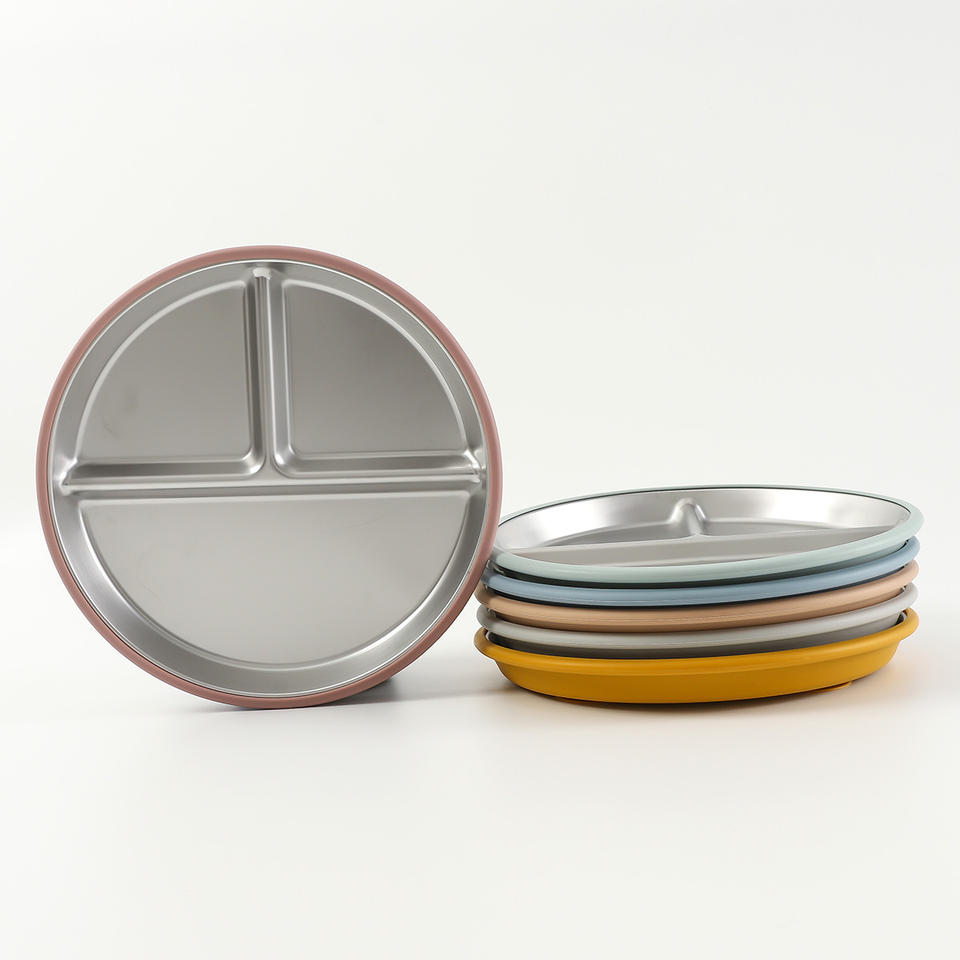 แผ่นสแตนเลส304เกรดอาหารสำหรับเด็กซิลิกาเจลพร้อมตัวดูดซิลิโคนสำหรับรับประทานอาหารสำหรับเด็ก
