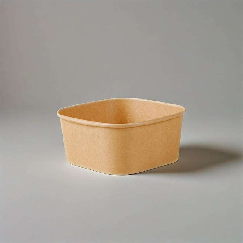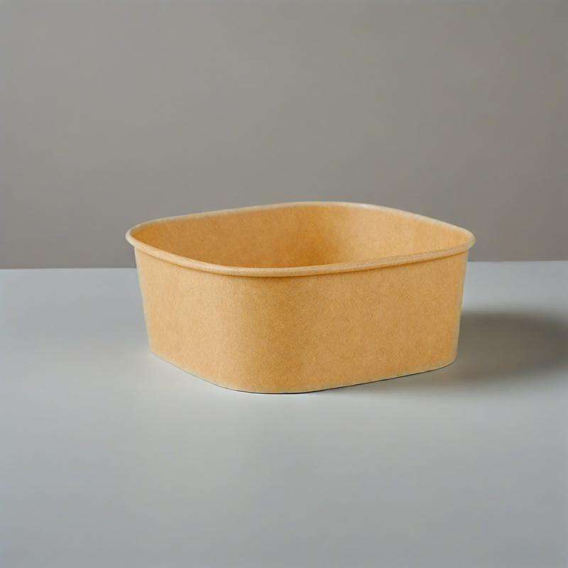 ถ้วยกระดาษคราฟท์ทรงสี่เหลี่ยมสำหรับใส่อาหาร ขนาด 500 มล. 650 มล. 1000 มล. เกรดอาหารสำหรับขายส่ง พร้อมฝาปิด