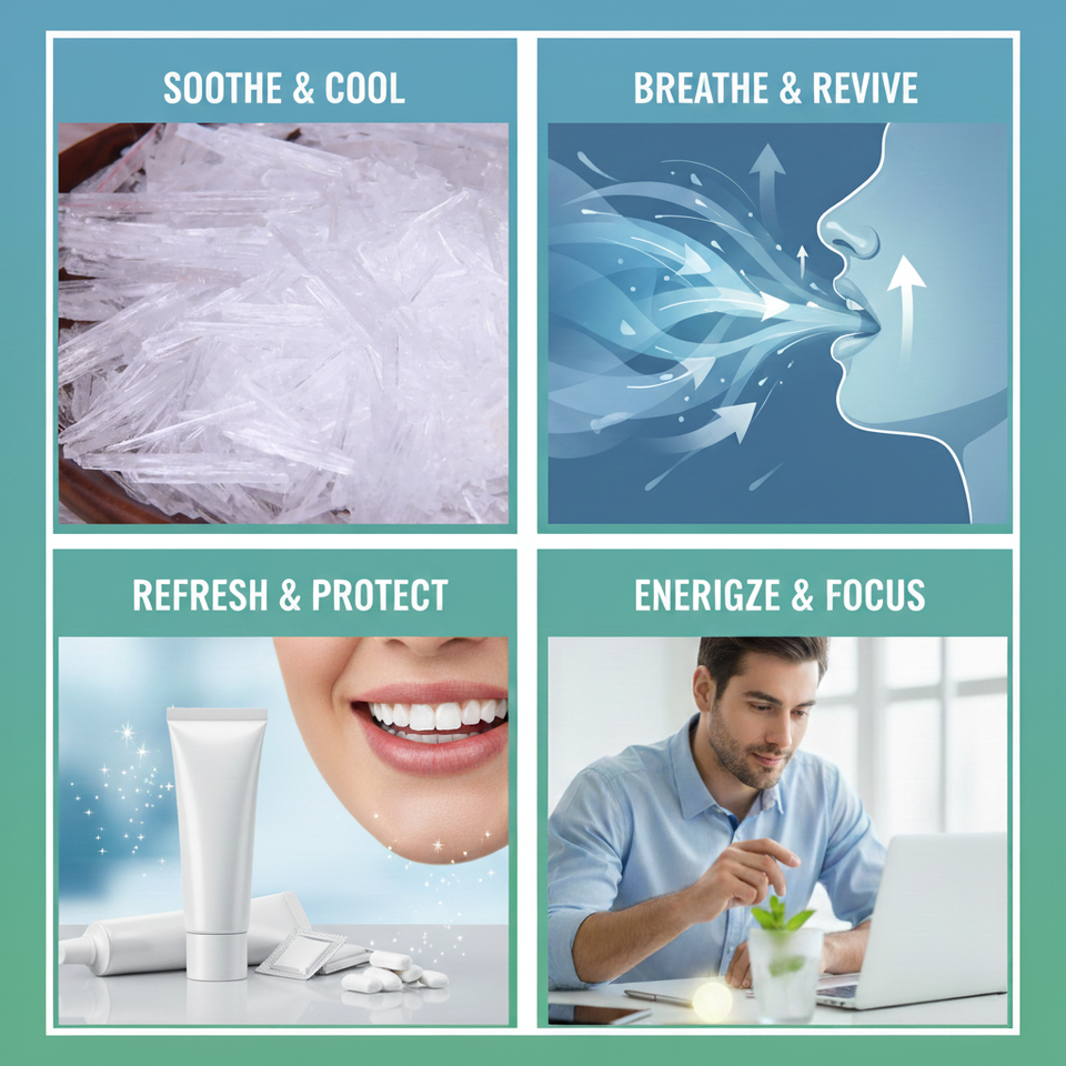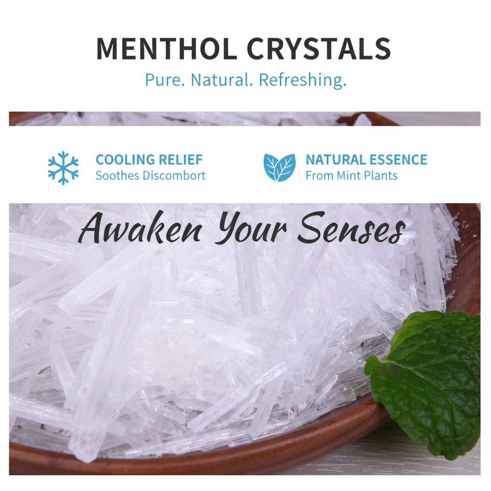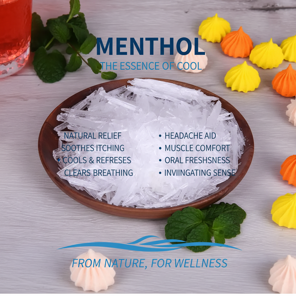 คริสตัลเมนทอลเปปเปอร์มินต์ธรรมชาติเกรดอาหารสำหรับขายส่ง ใช้ในซาวน่า วัตถุเจือปนอาหาร แต่งกลิ่นและรสชาติ เครื่องสำอาง แชมพู
