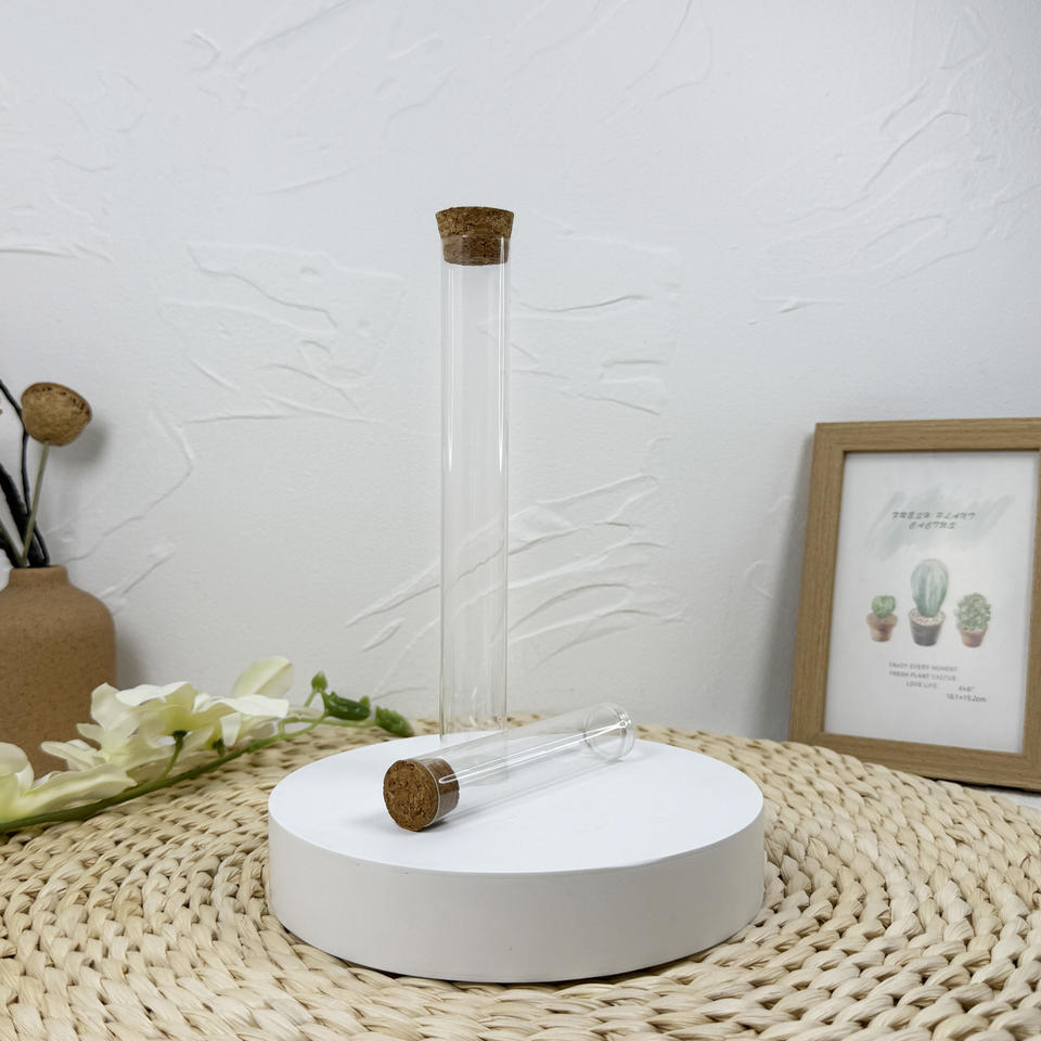 หลอดทดลองพลาสติกใสมีจุกไม้ก๊อกบรรจุภัณฑ์ลูกอมเกรดอาหารขายส่ง