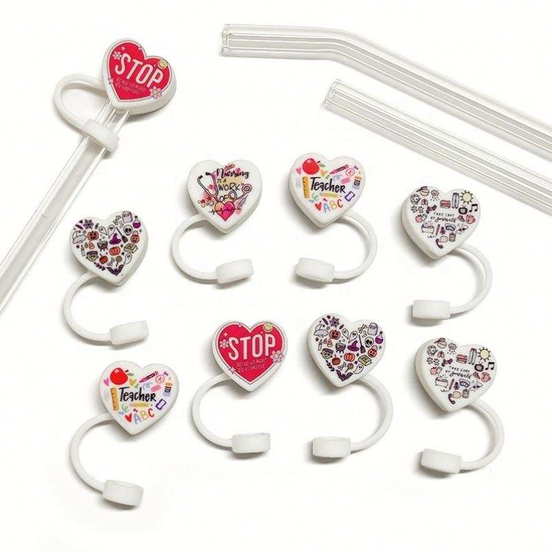 จุกปิดหลอดดูดน้ำซิลิโคนเกรดอาหาร ลายหัวใจ พิมพ์ลายตามสั่ง สำหรับแก้ว ขนาด 10 มม. ใช้สำหรับตั้งแคมป์ ขายส่ง