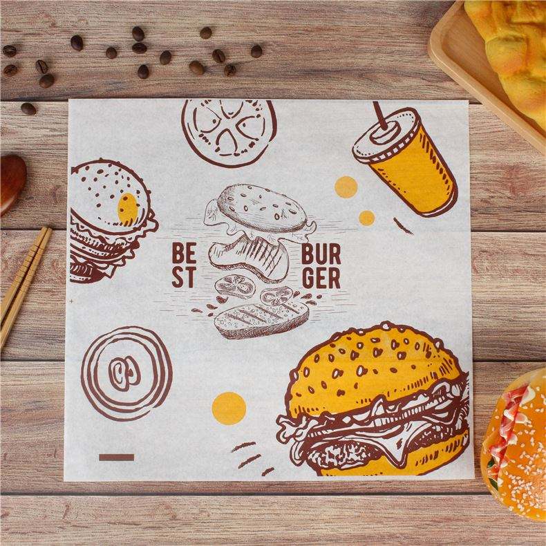 กระดาษห่ออาหารขายส่ง ออกแบบ/ขนาดตามสั่ง เคลือบ PE สำหรับห่อแซนวิช/เบอร์เกอร์/ขนมปัง กระดาษห่ออาหารเกรดอาหาร