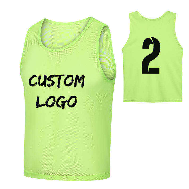 เสื้อกั๊กฝึกซ้อมฟุตบอลแบบขายส่ง เสื้อกั๊กซ้อมฟุตบอลแบบกลับด้านได้ ผลิตจากโพลีเอสเตอร์ตาข่าย 100% รับสั่งพิมพ์ลายทีม