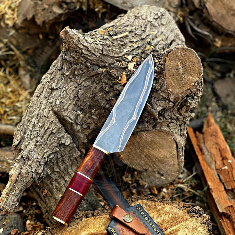 มีดเชฟใบมีดเหล็กดามัสกัสทองแดงปลอมแบบขายส่ง พร้อมด้ามไม้ มีดครัวสำหรับตั้งแคมป์แบบใหม่ สำหรับใช้ในบ้านระดับมืออาชีพ