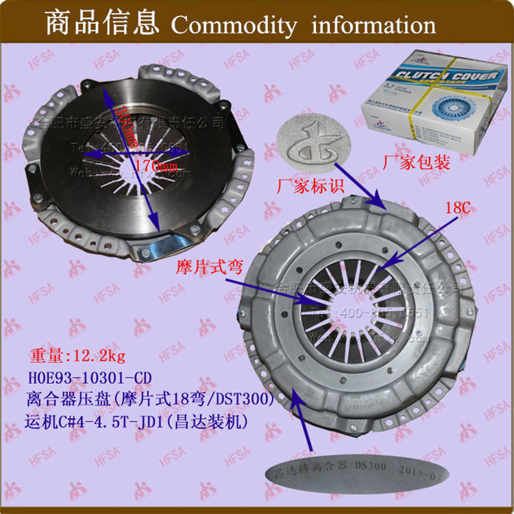 อะไหล่รถยกขายส่ง 18C300 แผ่นคลัตช์แบบมอเตอร์ ชุดคลัตช์ แผ่นกดคลัตช์ อุปกรณ์เสริมสำหรับ Hangzhou 4L-C C # มอเตอร์ 4-4.5 ตัน