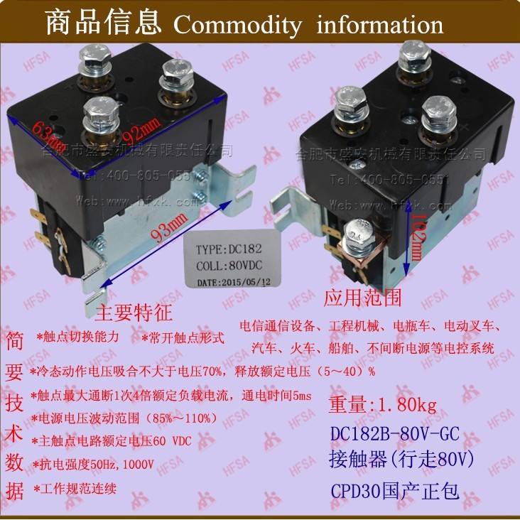 Wholesale Forklift Parts DC182B-80V Contactors Electromagnetic Switches Electromagnetic Relays with 80V Travel