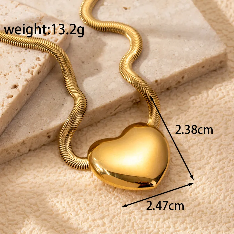 ชุดเครื่องประดับรูปหัวใจสไตล์ฝรั่งเศส304สแตนเลสพร้อมโซ่ชุบทอง