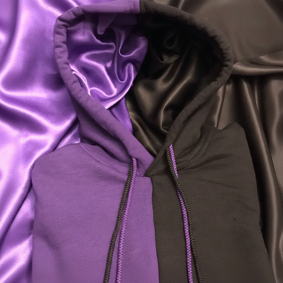 เสื้อสเวตเตอร์แบบสวมหัวทำจากผ้าซาตินมีฮู้ดกำหนดได้เอง2โทนสีบล็อกใส่ได้ทั้งชายและหญิง