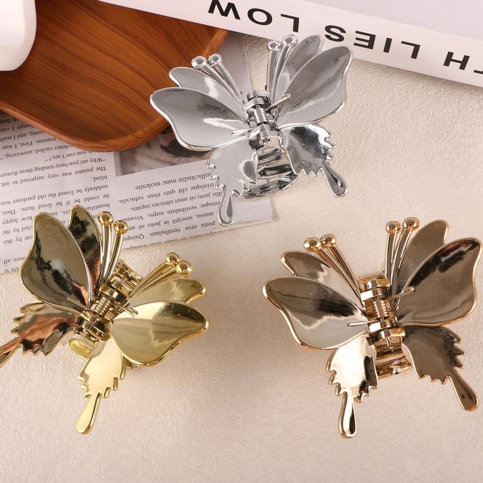 Wholesale Frosted Butterfly Hair Claw Clips Gold Silver Acrylic Korean Sweet Hair Claws for Women Plastic Material