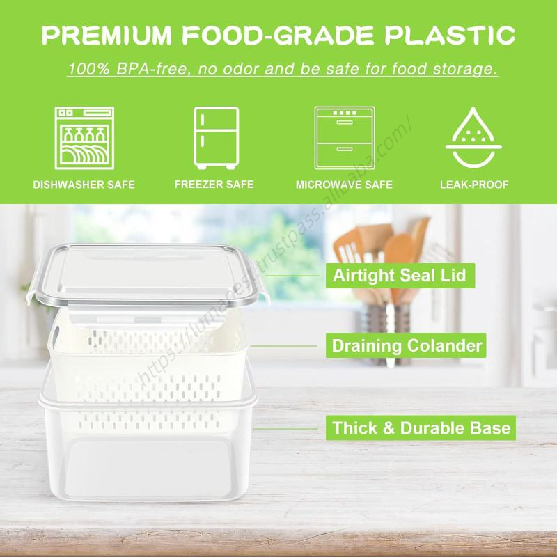 กล่องเก็บผลไม้แบบขายส่งสำหรับจัดระเบียบตู้เย็นและผลไม้ขนาดใหญ่ พร้อมฝาปิดสุญญากาศ สำหรับเบอร์รี่ ผักกาดหอม สลัด และผักต่างๆ