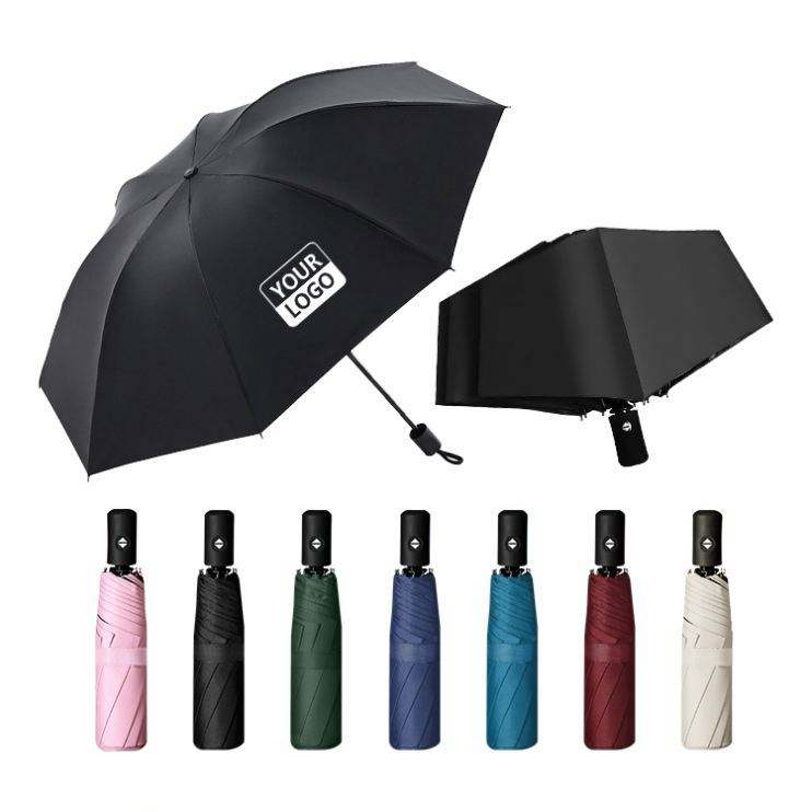 ร่มพับ 3 ตอน 8 ซี่โครง ควบคุมอัตโนมัติเต็มรูปแบบ ขายส่ง สำหรับงานปาร์ตี้ ของชำร่วย ของขวัญ พร้อมสกรีนโลโก้
