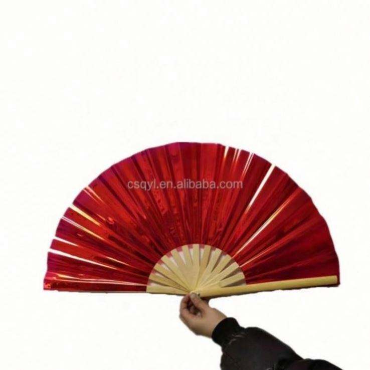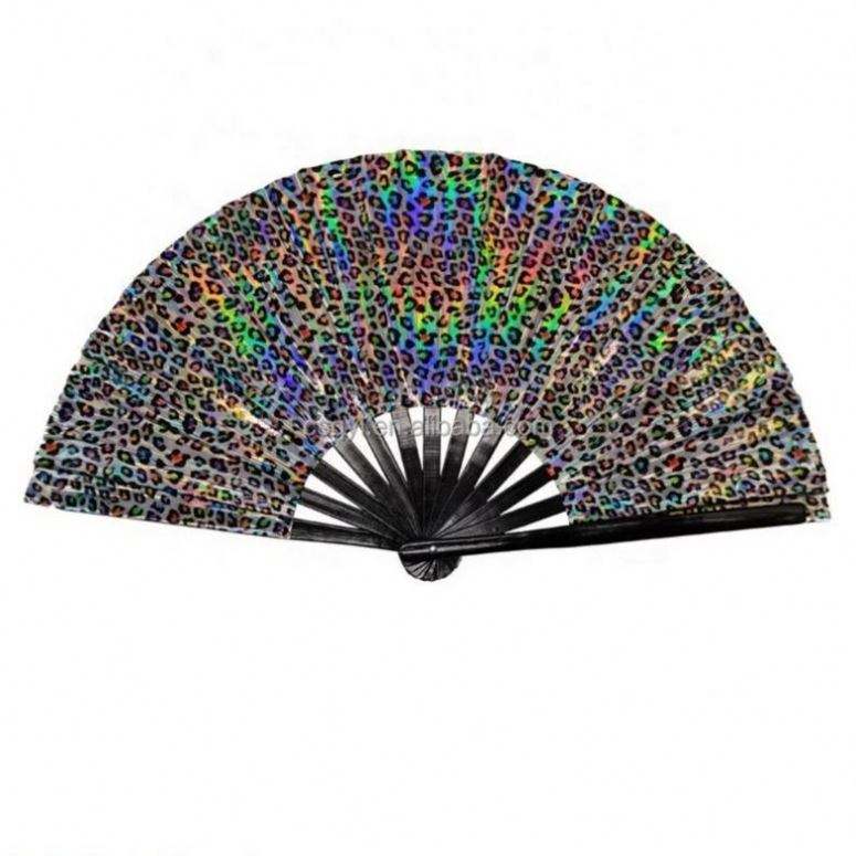 Wholesale Full Color PVC Holographic 13 Inch Rave Fan Handmade Large Bamboo Folding Hand Fan for Women and Party