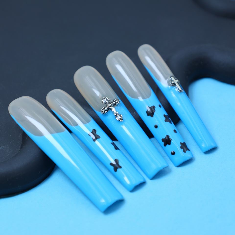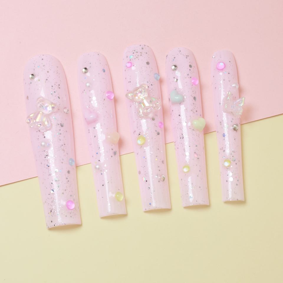 เล็บปลอมอะคริลิคแบบเต็มเล็บทรงโลงศพ งานแฮนด์เมด หรูหรา ลายผีเสื้อ 3 มิติ ปลายเล็บแบบฝรั่งเศส คุณภาพสูง ขายส่ง
