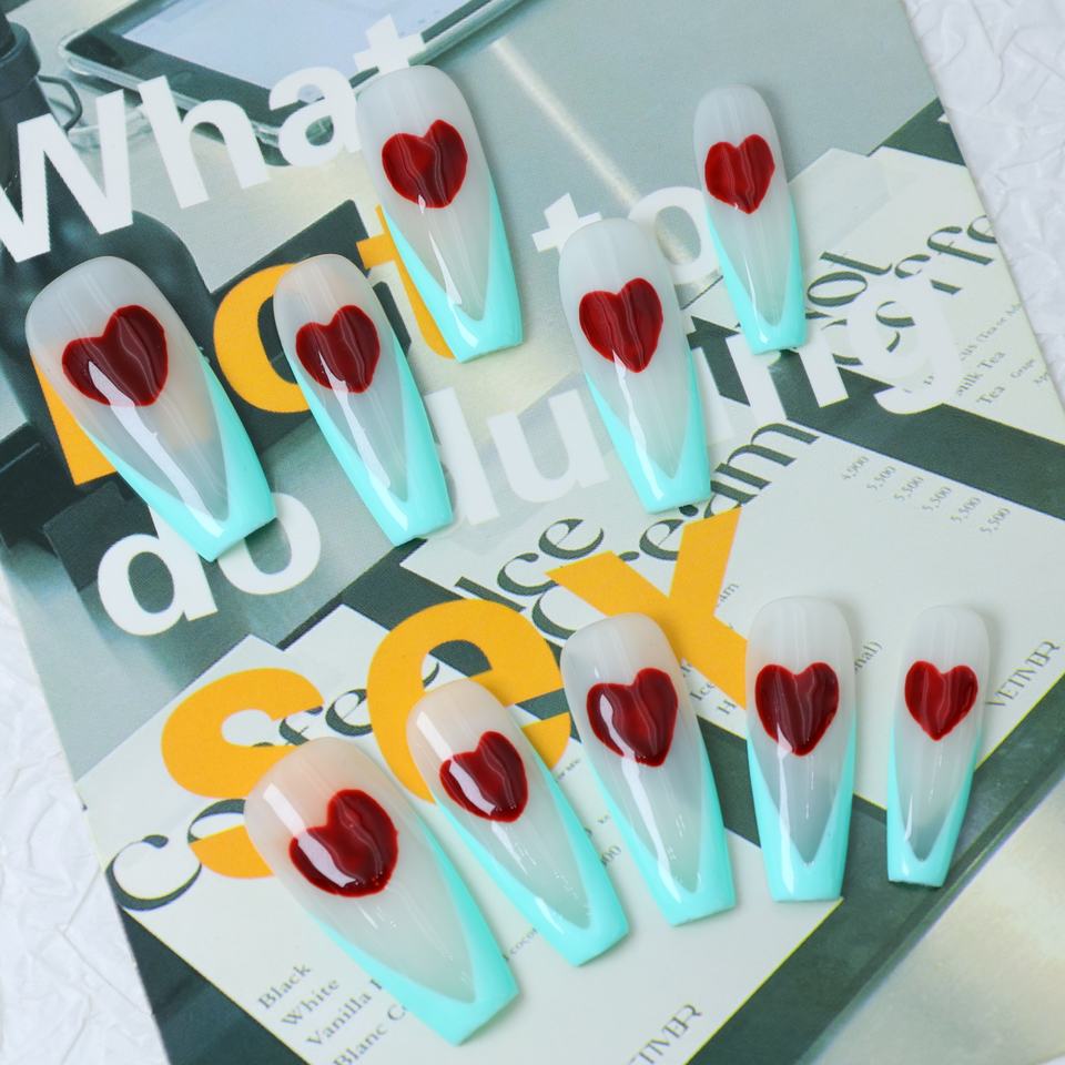 เล็บปลอมอะคริลิคแบบเต็มเล็บทรงโลงศพ งานแฮนด์เมด หรูหรา ลายผีเสื้อ 3 มิติ ปลายเล็บแบบฝรั่งเศส คุณภาพสูง ขายส่ง