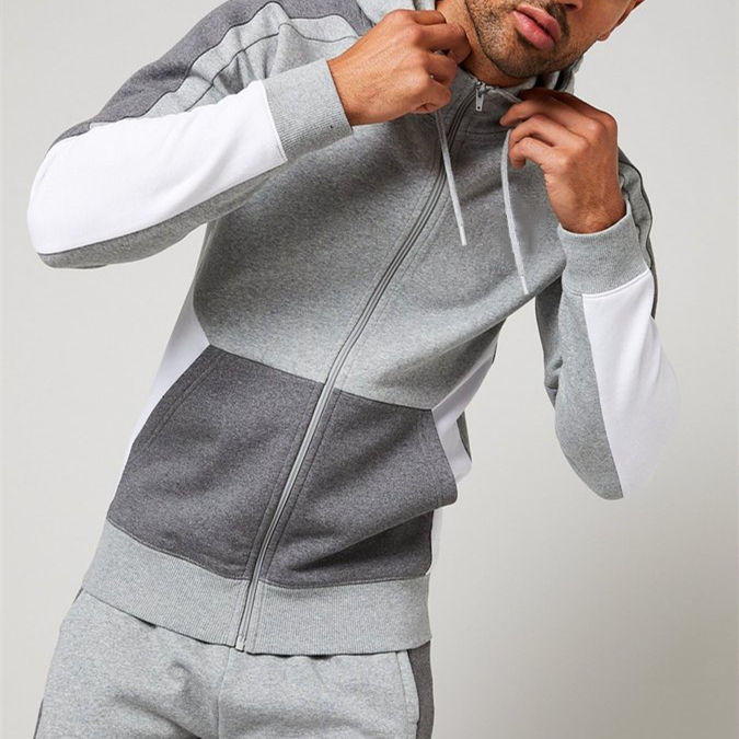 ชุดออกกำลังกายผ้าฝ้ายสำหรับผู้ชายชุดออกกำลังกายมีซิปแยกช่องใส่โทรศัพท์มีกระเป๋าจิงโจ้โลโก้ออกแบบได้ตามต้องการ