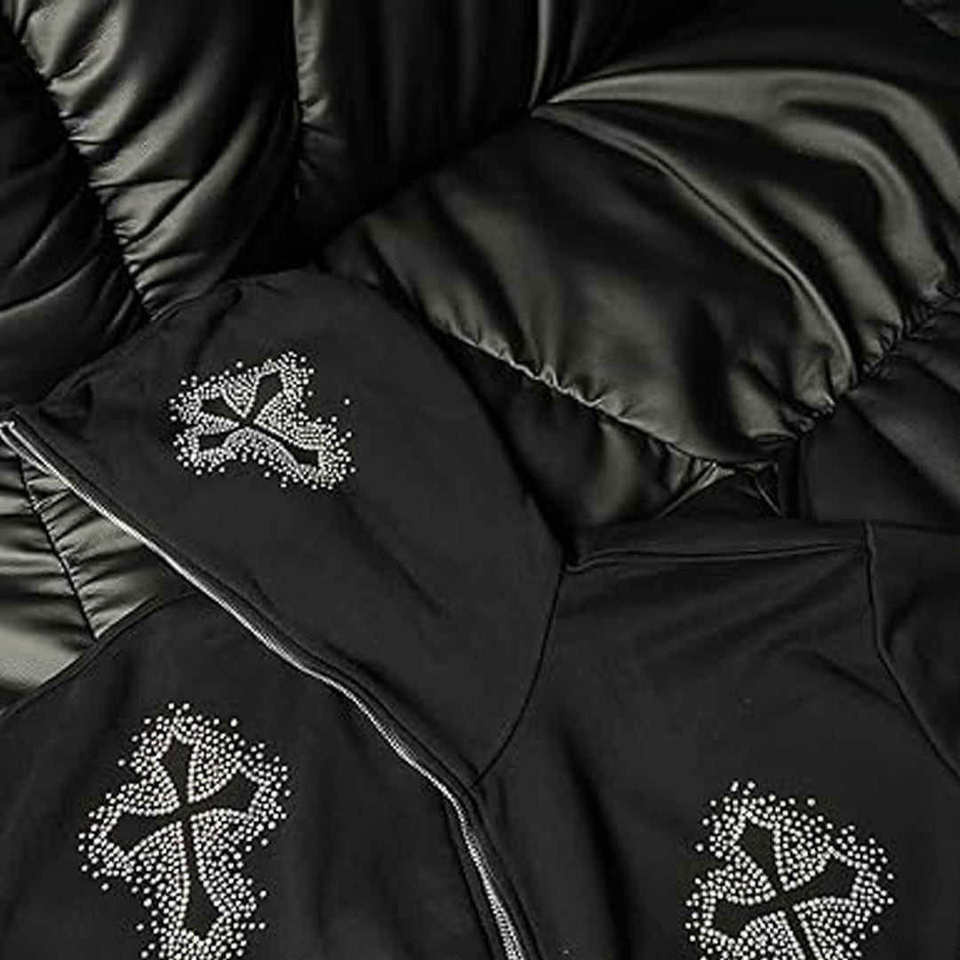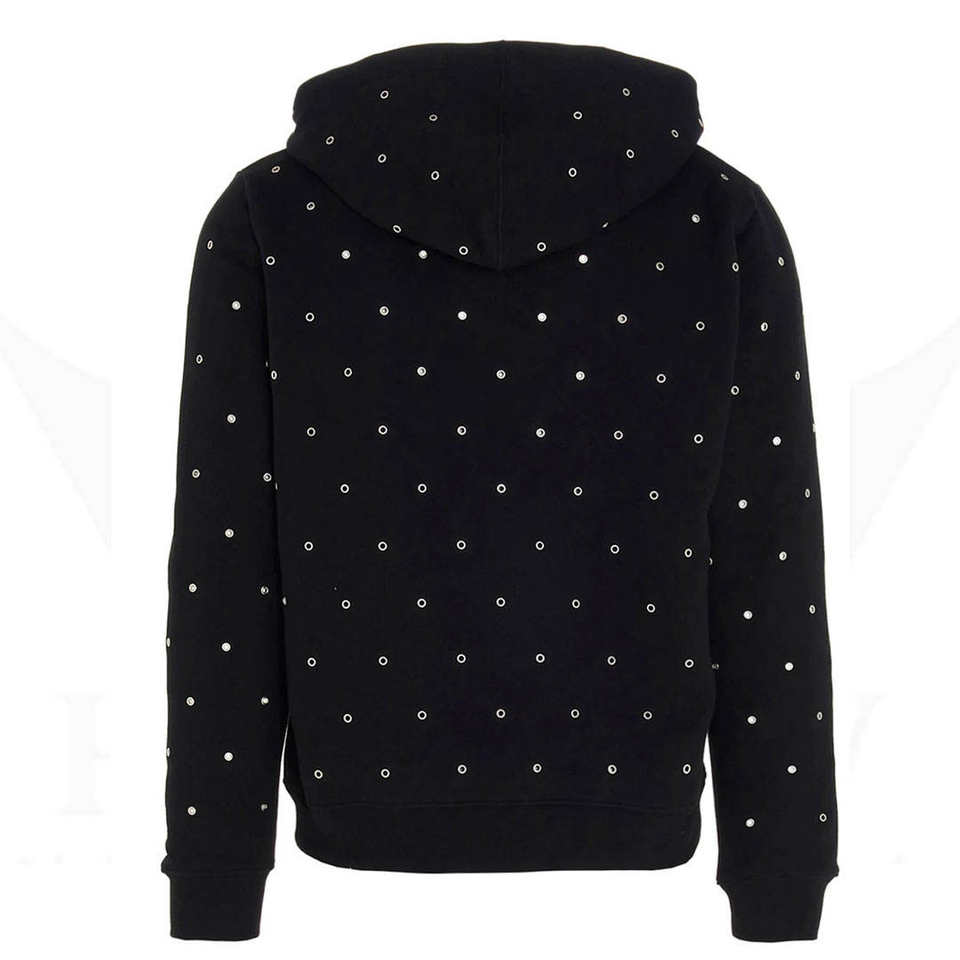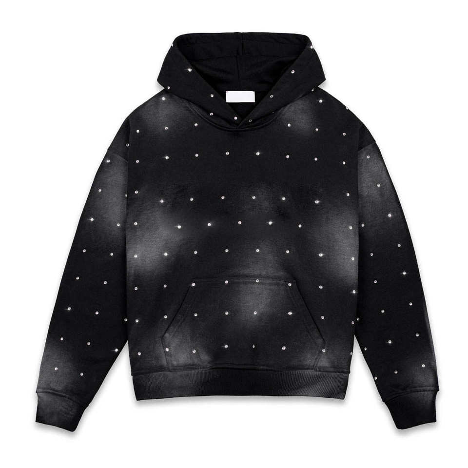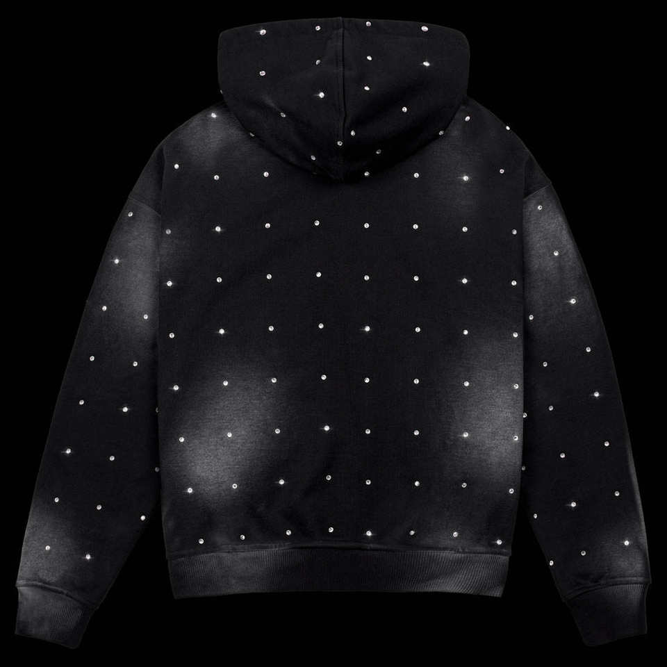 เสื้อฮู้ดดี้ปักโลโก้แบบเต็มตัวด้วยเพชรเทียม ขายส่ง ผ้าฝ้าย 100% ประดับด้วยอัญมณีวิบวับ ทรงหลวม สไตล์สตรีทแวร์ ใส่ได้ทั้งชายและหญิง