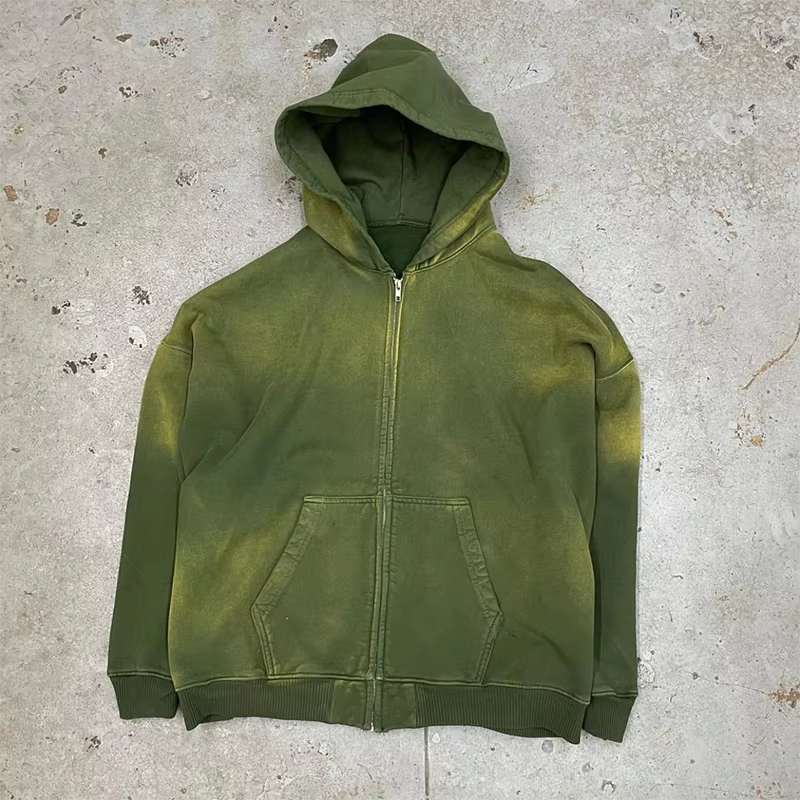 เสื้อฮู้ดผ้าฝ้าย100% ระบายอากาศได้ดีมีซิปเต็มตัวแบบวินเทจแอซิดแอซิดมีฮู้ดกำหนดได้เองเสื้อสเวตเชิ้ตใส่ได้ทั้งผู้หญิงและผู้ชาย