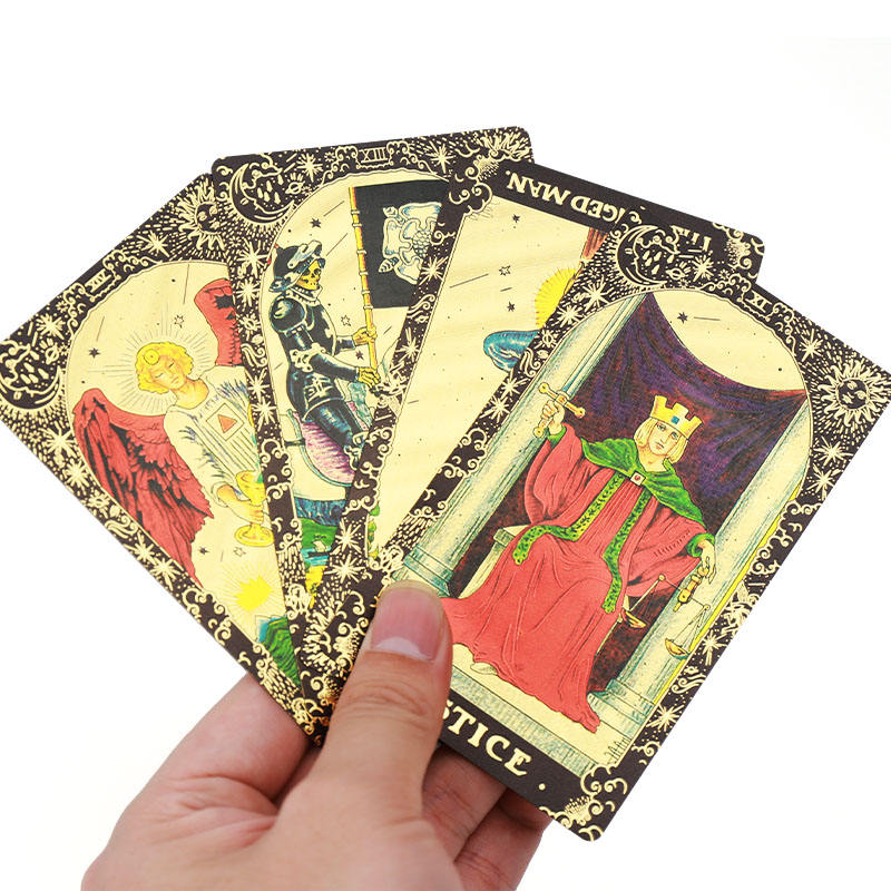 ไพ่ทาโรต์พิมพ์ลายตลกๆ ขายส่ง พร้อมโลโก้ แบบโฮโลแกรม ขอบปิดทอง พร้อมคู่มือ ผลิตในจีน