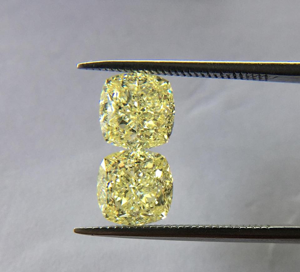 VVS2เพชรทรงหลวมสีเหลืองอ่อนจากอินเดียได้รับการรับรองจาก GIA เบาะรองนั่งทรงหลวมทำจากเพชรธรรมชาติ
